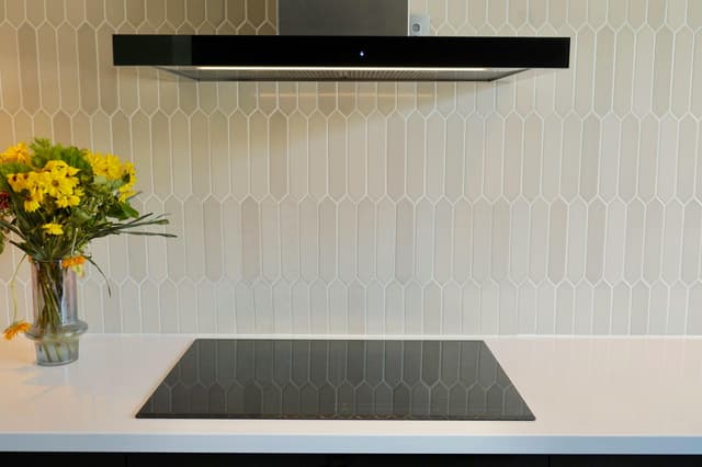 Modern open kitchen complete with all appliances including induction cooktop, oven, dishwasher and fridge-freezer, plus all necessary cooking utensils, with a lot of storage drawers/cabinets