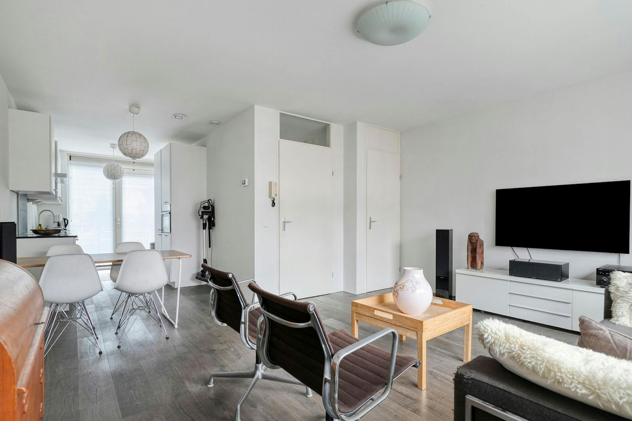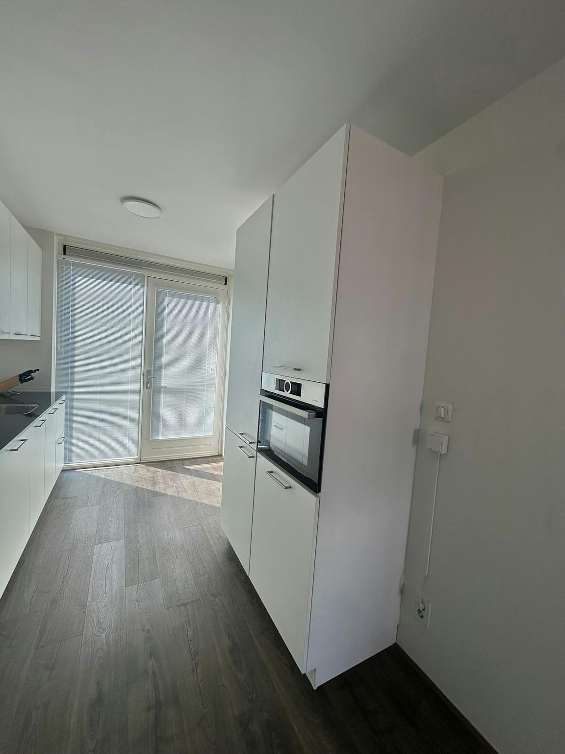 De woning beschikt over een lichte woonkamer met moderne open keuken (voorzien van inbouwapparatuur), drie slaapkamers en een nette badkamer met inloopdouche en wasmachineaansluiting. Het zonnige balkon op het zuidwesten is bereikbaar vanaf de bovenverdieping en biedt een fijne plek om buiten te zitten.