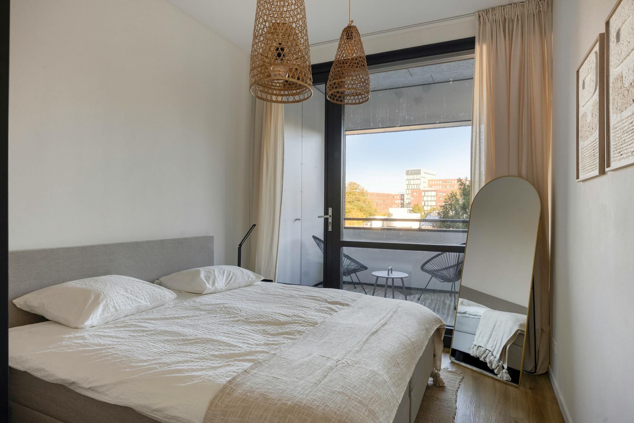 The living room exudes a relaxed vibe, with a comfortable lounge sofa where you can enjoy a Netflix series or work productively at the spacious dining table, which also serves as a workspace. This apartment offers the perfect balance between relaxation and productivity. In addition, you have super-fast internet, so you are always connected. For moments of peace and relaxation, you can enjoy your balcony, an ideal place to relax and unwind. The bedroom is an oasis of tranquility, with a large, comfortable bed with lovely pillows that are reminiscent of a luxury hotel experience. A closet offer plenty of storage space, including hanging space for clothes. A reading lamp by the bed creates an atmosphere, while the large windows in the bedroom and the rest of the apartment provide abundant daylight. In short, this apartment offers everything you need for a comfortable and stylish stay, with convenience, comfort, and a top location in the vibrant heart of Amersfoort.
