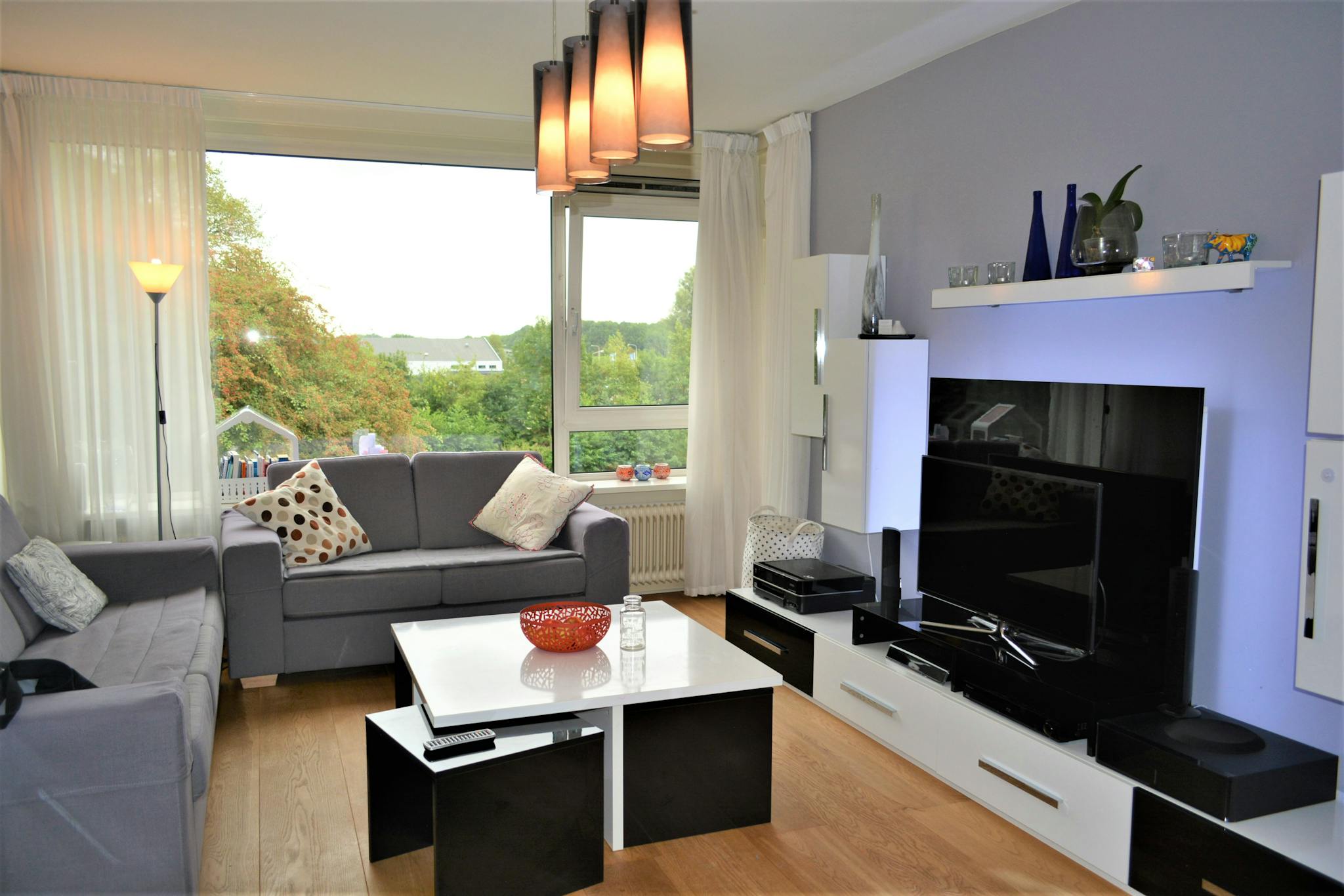 A spacious, bright, and fully furnished apartment available for rent as of 1 March. The apartment measures approximately 80 m2 and consists of two bedrooms and a living room.