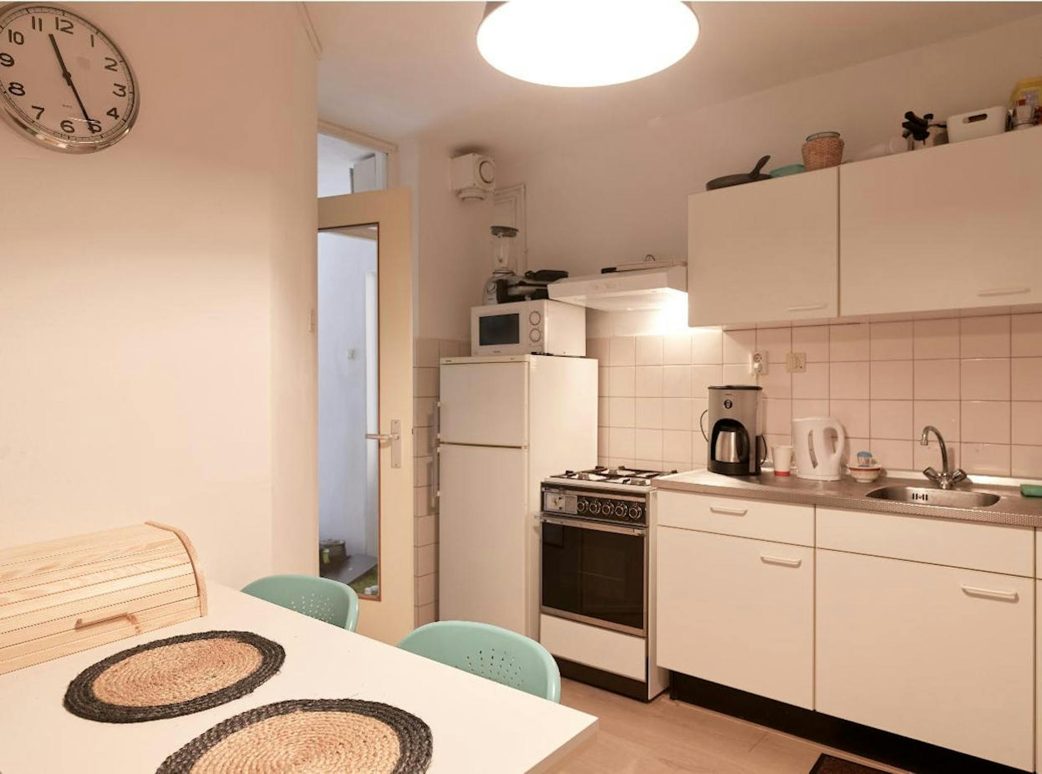 The house kitchen with all the basic facilities, bathroom with a washing machine and toilet is shared.