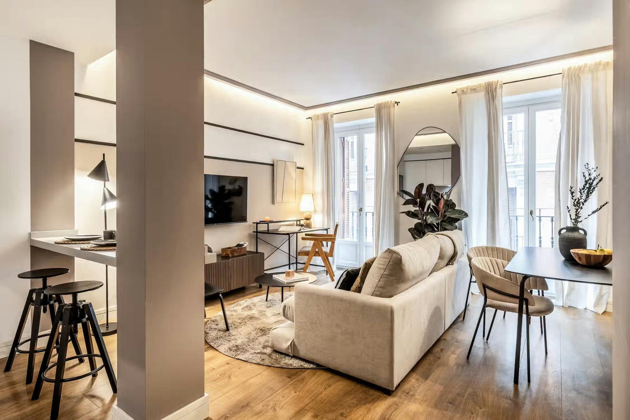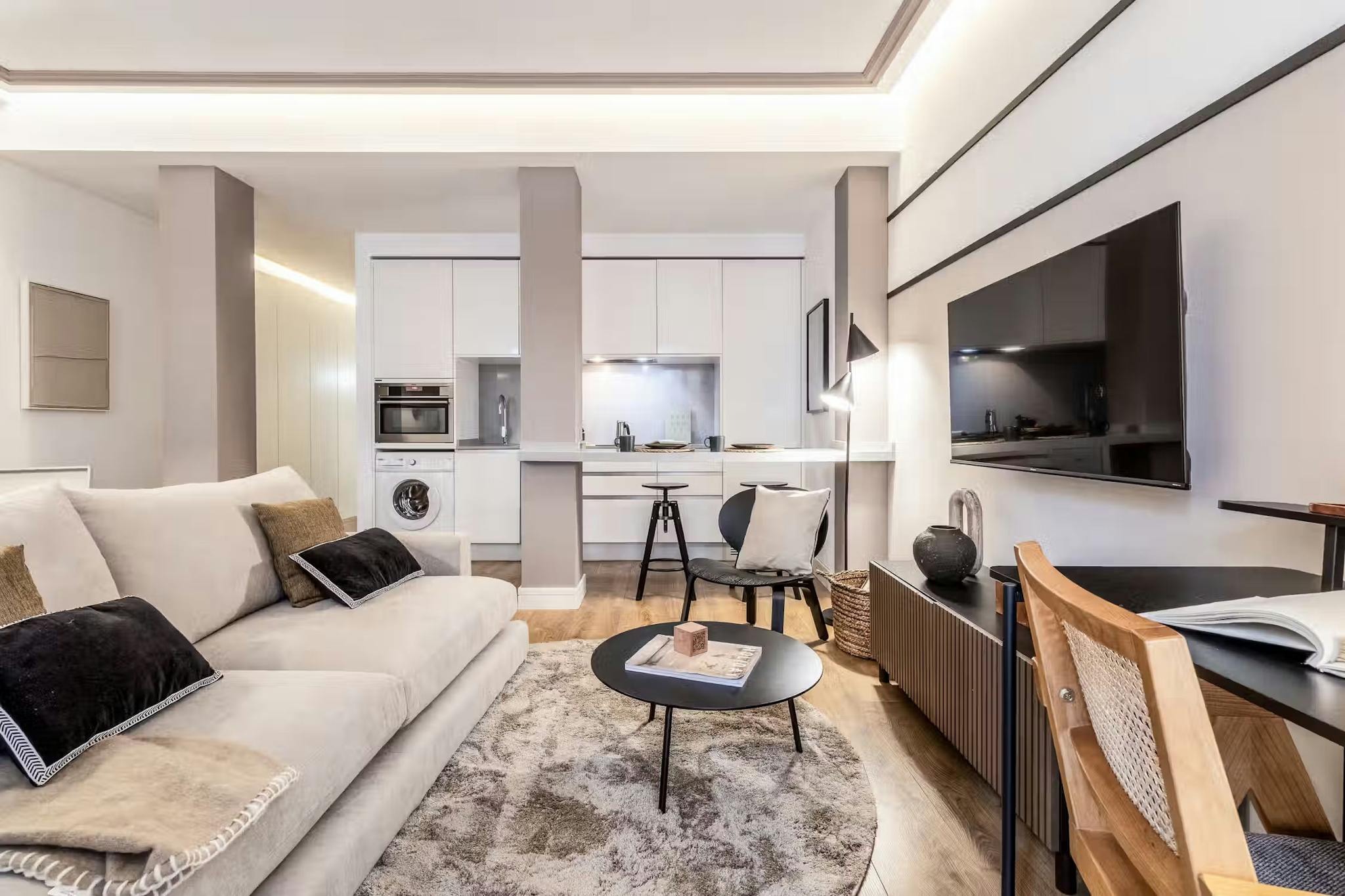 Step into a thoughtfully furnished living space that blends classic Amsterdam charm with contemporary comforts. The apartment features: