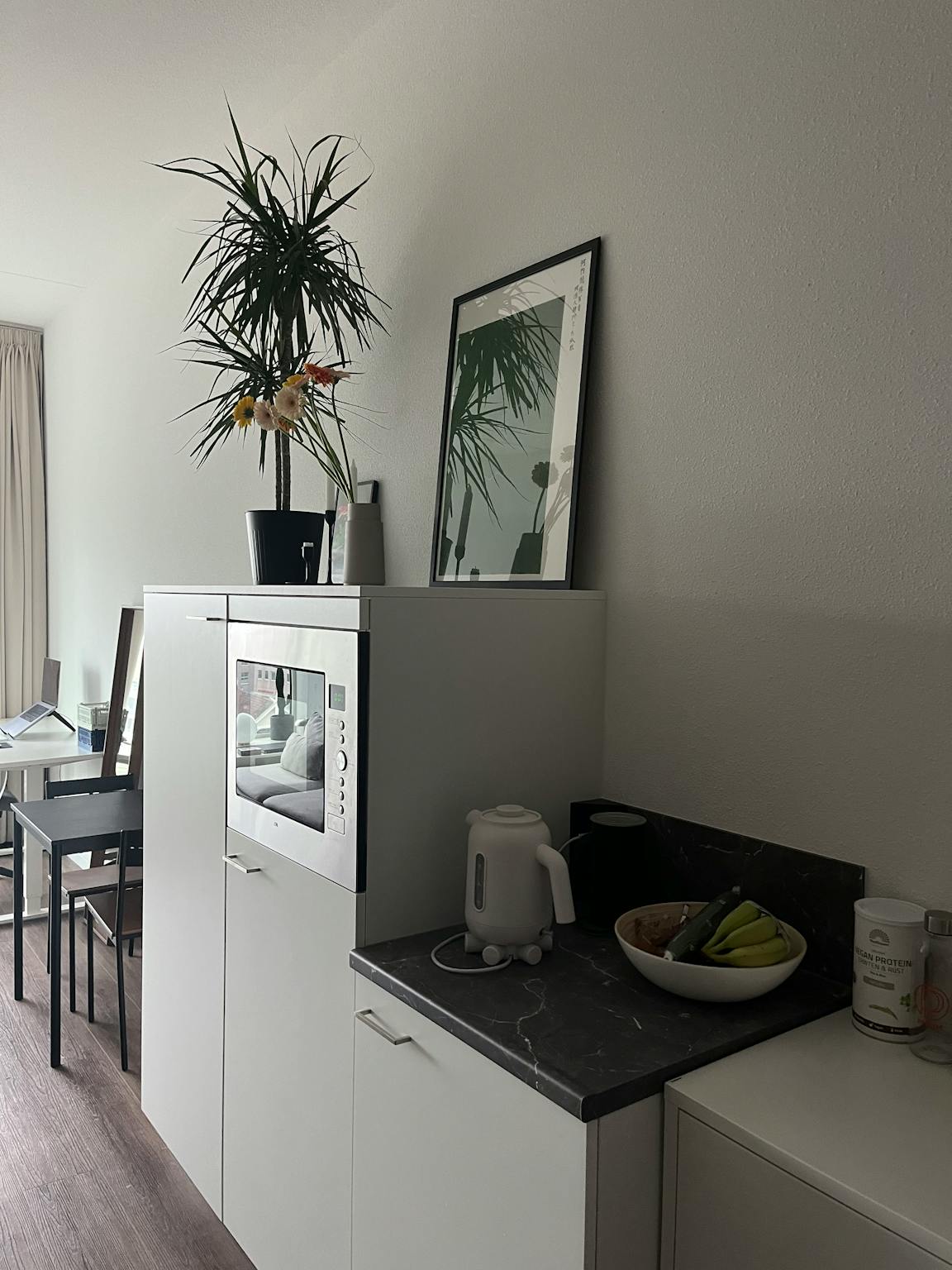 The apartment features large panoramic windows and high ceilings. It is fully equipped with everything you need for comfortable living and remote work, making it ideal for professionals, expats, or couples staying in Amsterdam for 1-3 months.
