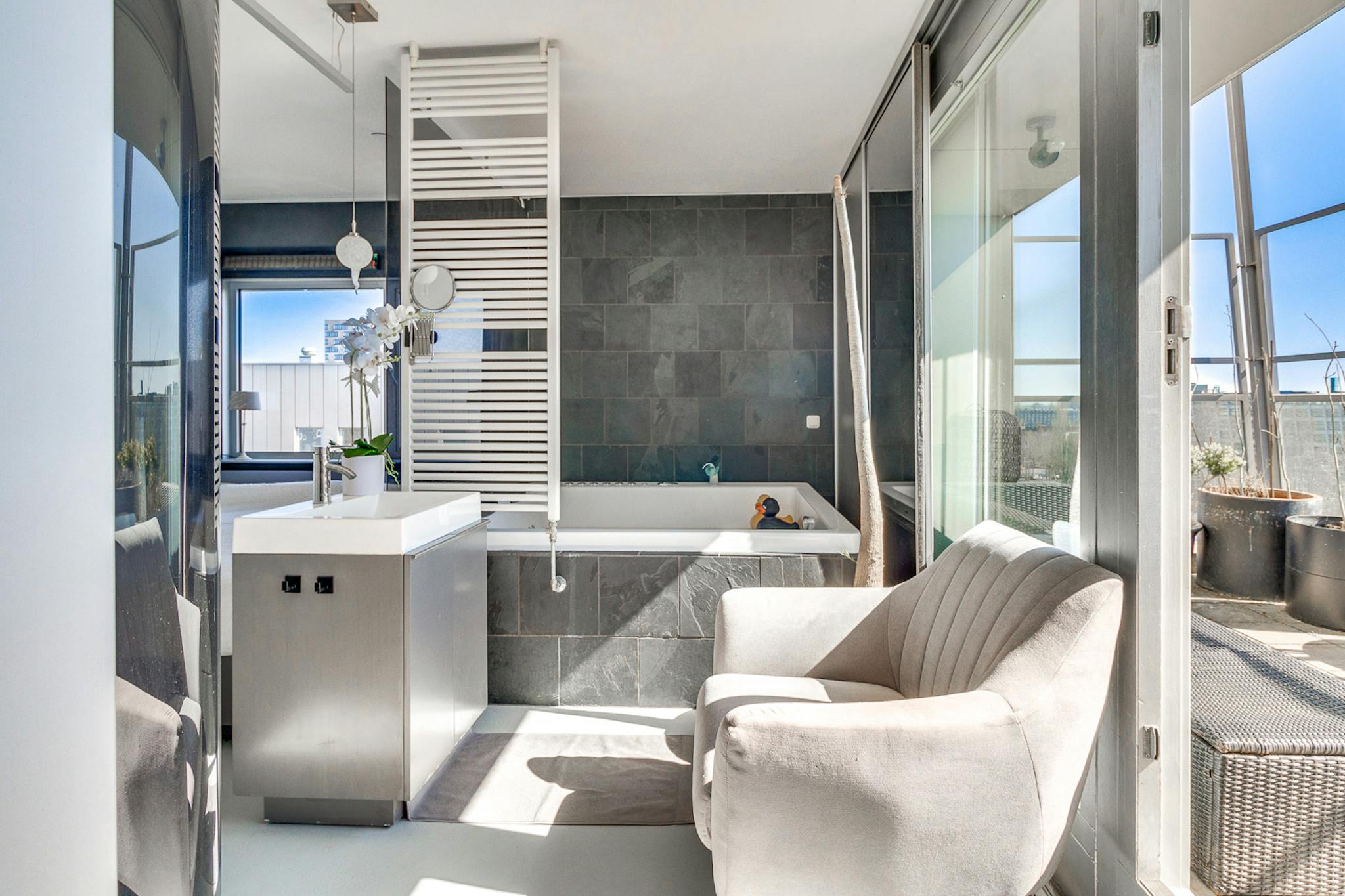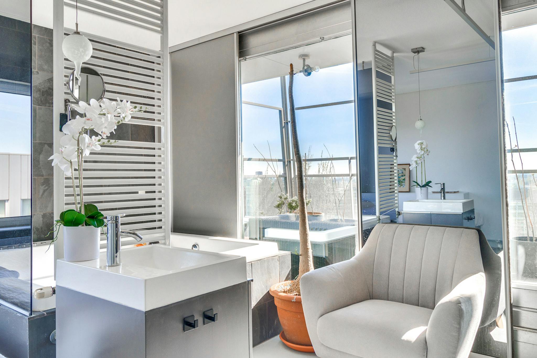 Non-SmokingNot allowedThis expansive 130m2 top-floor apartment offers a rare combination of space, light, and elevated privacy. Accessible via a lift, the home is defined by its panoramic views and two sun-drenched terraces that overlook the city skyline.