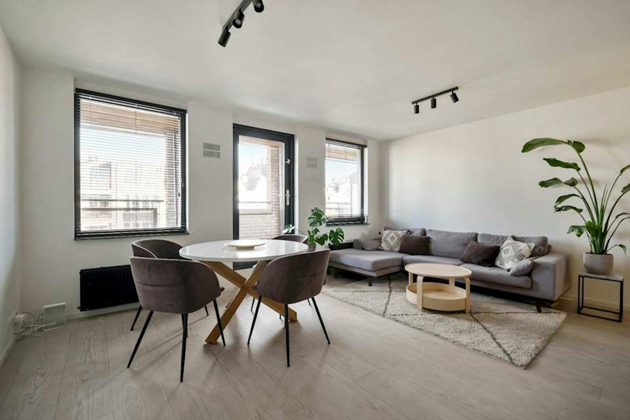 Non-SmokingNot allowedThis thoughtfully designed home offers comfortable accommodation across two well-appointed bedrooms. The master bedroom features a super king bed (180cm) with an integrated workspace and built-in wardrobe, while the second bedroom provides a double bed (140cm) with ample storage. The apartment's recent renovation, completed just 18 months ago, ensures every detail meets contemporary standards. The living area creates an inviting atmosphere with quality furnishings and entertainment facilities, complemented by a front-facing balcony that overlooks the charming Westerstraat. The true highlight is the sheltered roof terrace accessible from the upper level—a peaceful retreat perfect for relaxation or outdoor dining. Built in 1994, the building combines modern comfort with practical design, featuring wide staircases and excellent build quality. The apartment comes fully equipped for immediate occupancy, with all kitchen essentials, cleaning supplies, linens, and towels provided. High-speed internet and all utilities are included, making this an ideal turnkey solution. The flexible rental terms accommodate stays of two months or longer, perfect for extended visits, temporary relocations, or those seeking a home base while exploring longer-term options in the city.