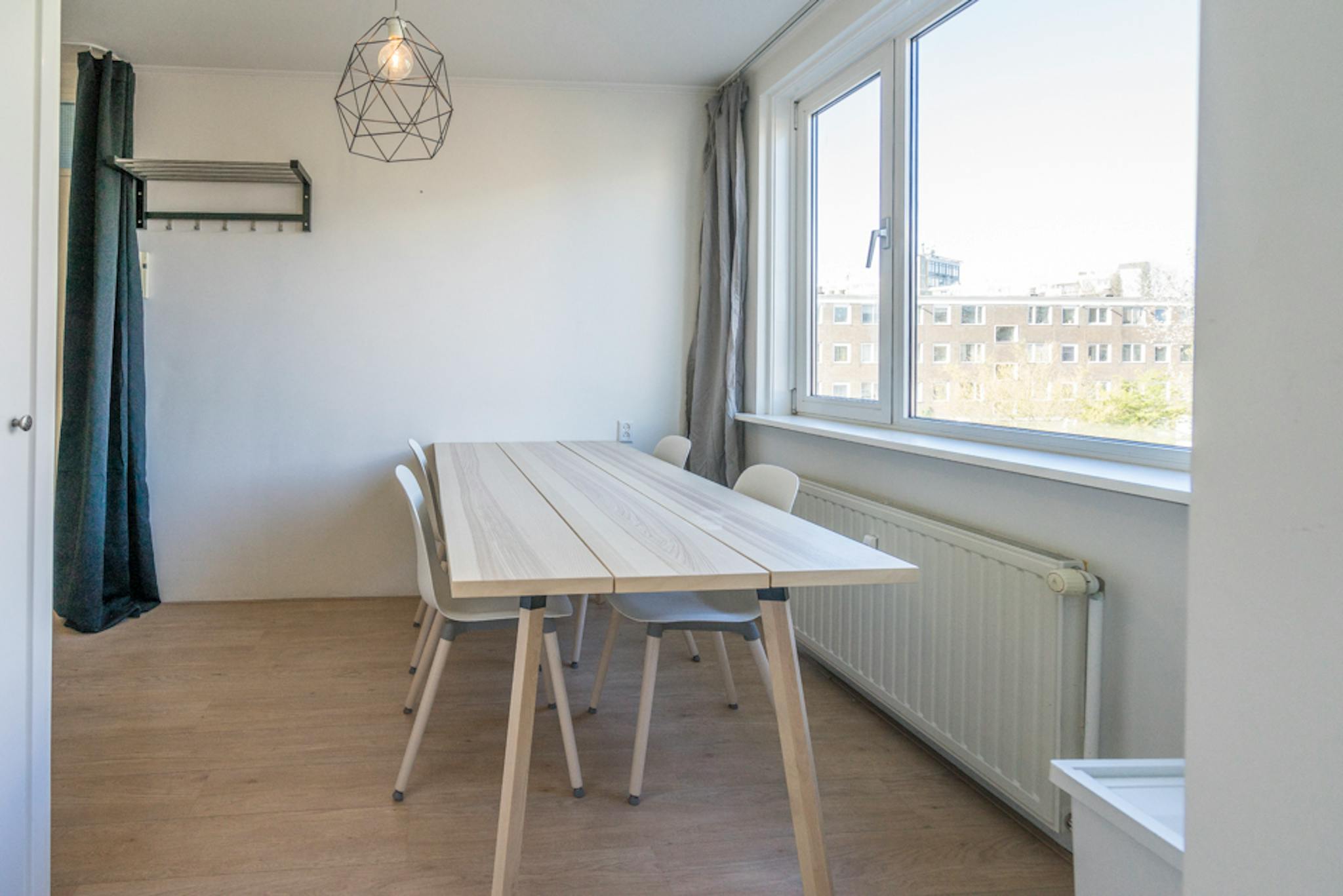 Fully furnished and equipped shared apartment in Amsterdam. The apartment features several areas that will be shared by the living group, including a kitchen and bathroom. Please note that this apartment is rented by a living group, which you will be part of. As part of the living group, you have the right to the exclusive use of the space that will be appointed to you in the shared apartment. This space is also fully furnished with all the essentials you need. Together with the living group, you will rent the entire apartment. The other occupants of the living group will determine your share of the rent.