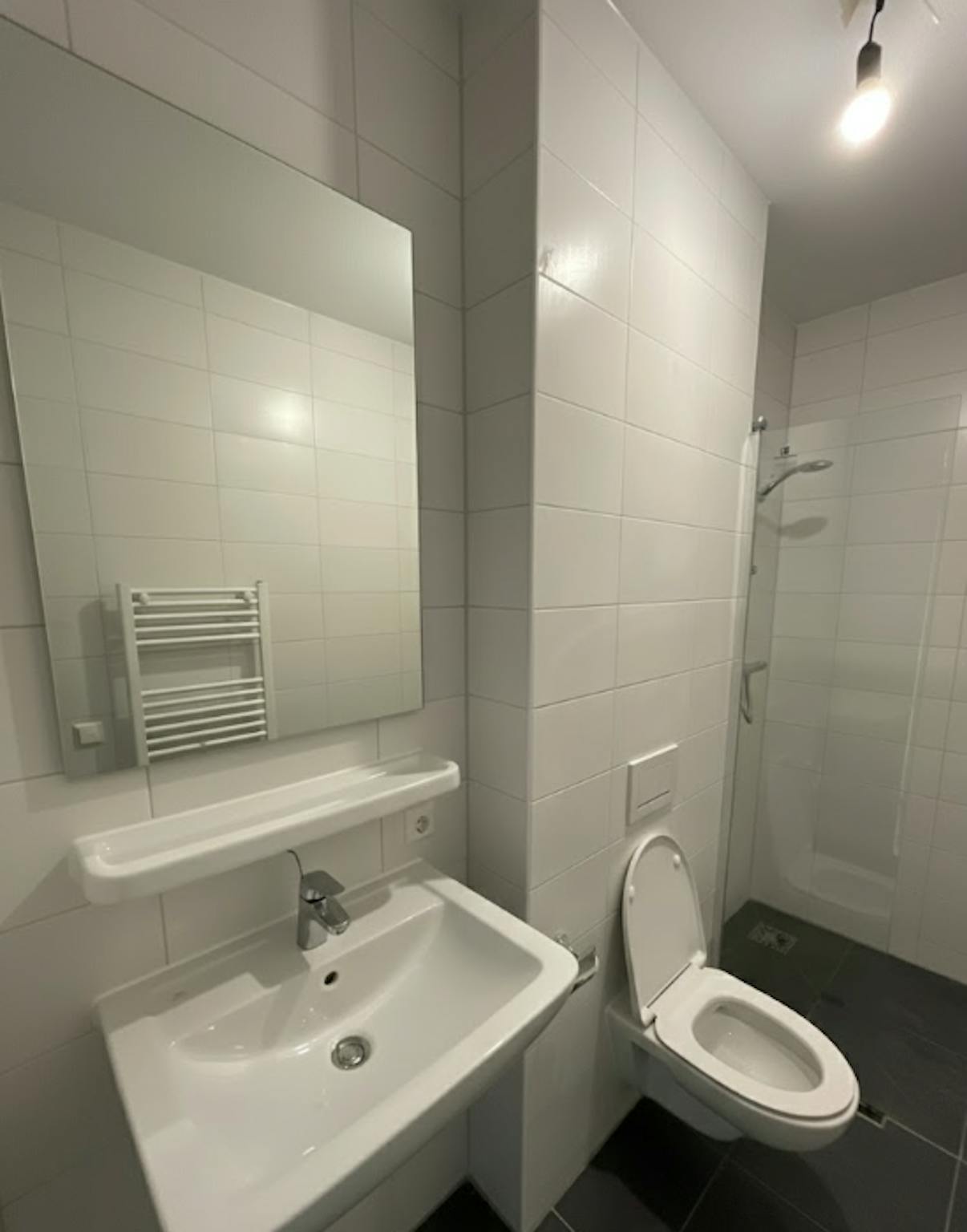 - A bathroom with walk-in shower
