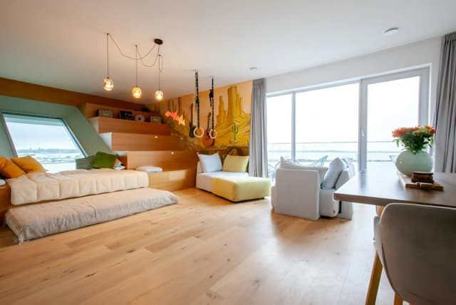 The building has an energy coefficient A+++ and it is an Architectural Building of the year 2022. There is paid underground garage via ParkBee and paid street parking.
