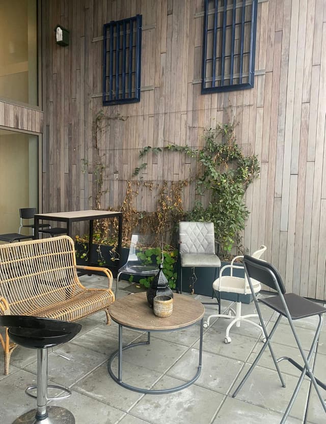 The room is on the 11th floor, offering a stunning view that feels like you're living in a New York penthouse. The building features several rooftop terraces, and right next door you'll find the vibrant restaurant Hotel Jansen.