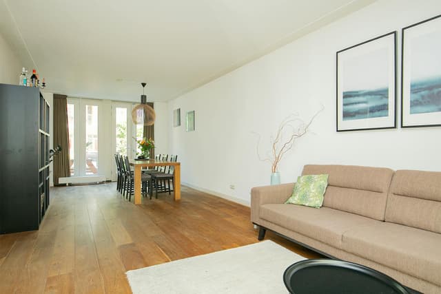 This beautifully renovated ground-floor maisonette of approx. 108 m2 offers three bedrooms, a private terrace, and direct access to a secure, child-friendly communal courtyard garden. The home is located next to a little park in the Spaarndammerbuurt, a charming neighbourhood with distinctive Amsterdam School architecture, surrounded by national heritage buildings.