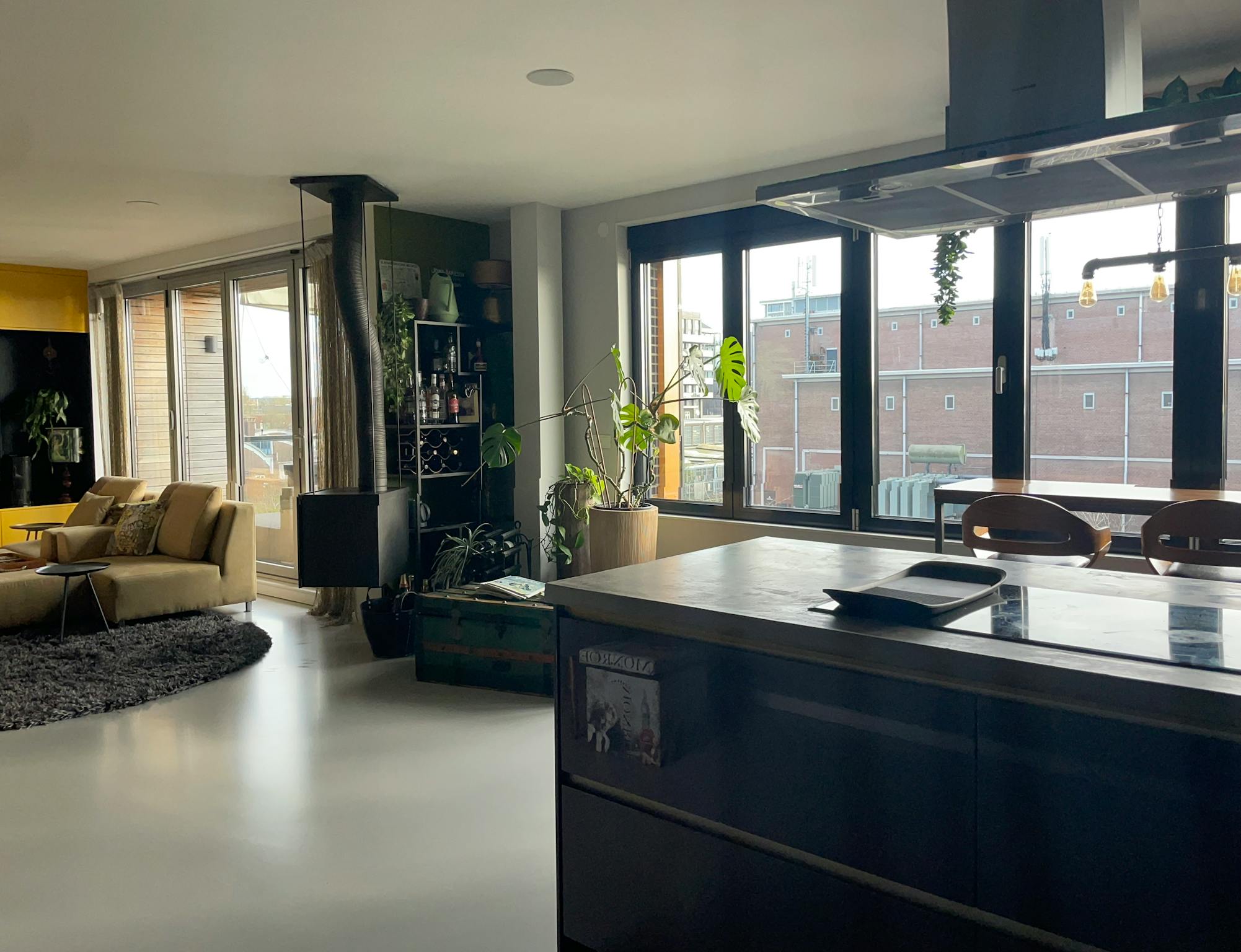 The apartment is a loft where lounging, cooking, eating and working merge together. The spacious 4-by-3-metre terrace also feels like part of the space, allowing you to live indoor-outdoor.