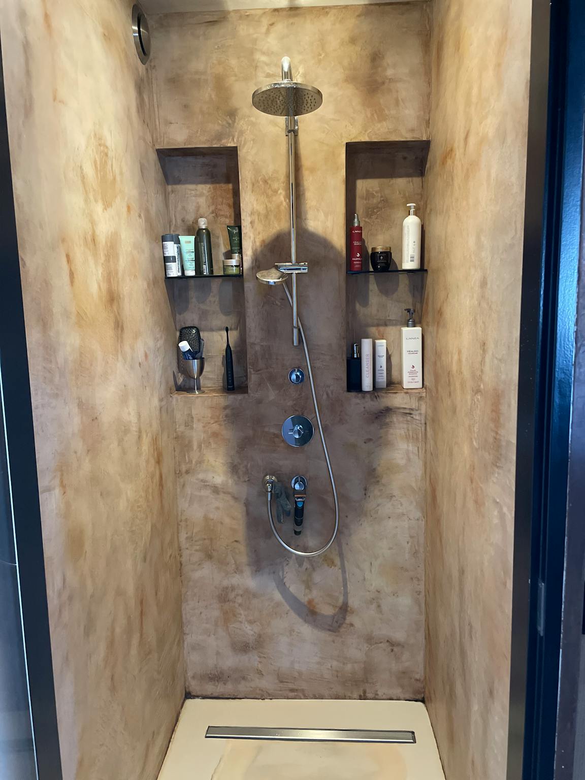 The bedroom with the king-size bed, hotel comfort mattress and television and the luxurious bathroom with whirlpool tub are connected so you have your own hamam within reach.