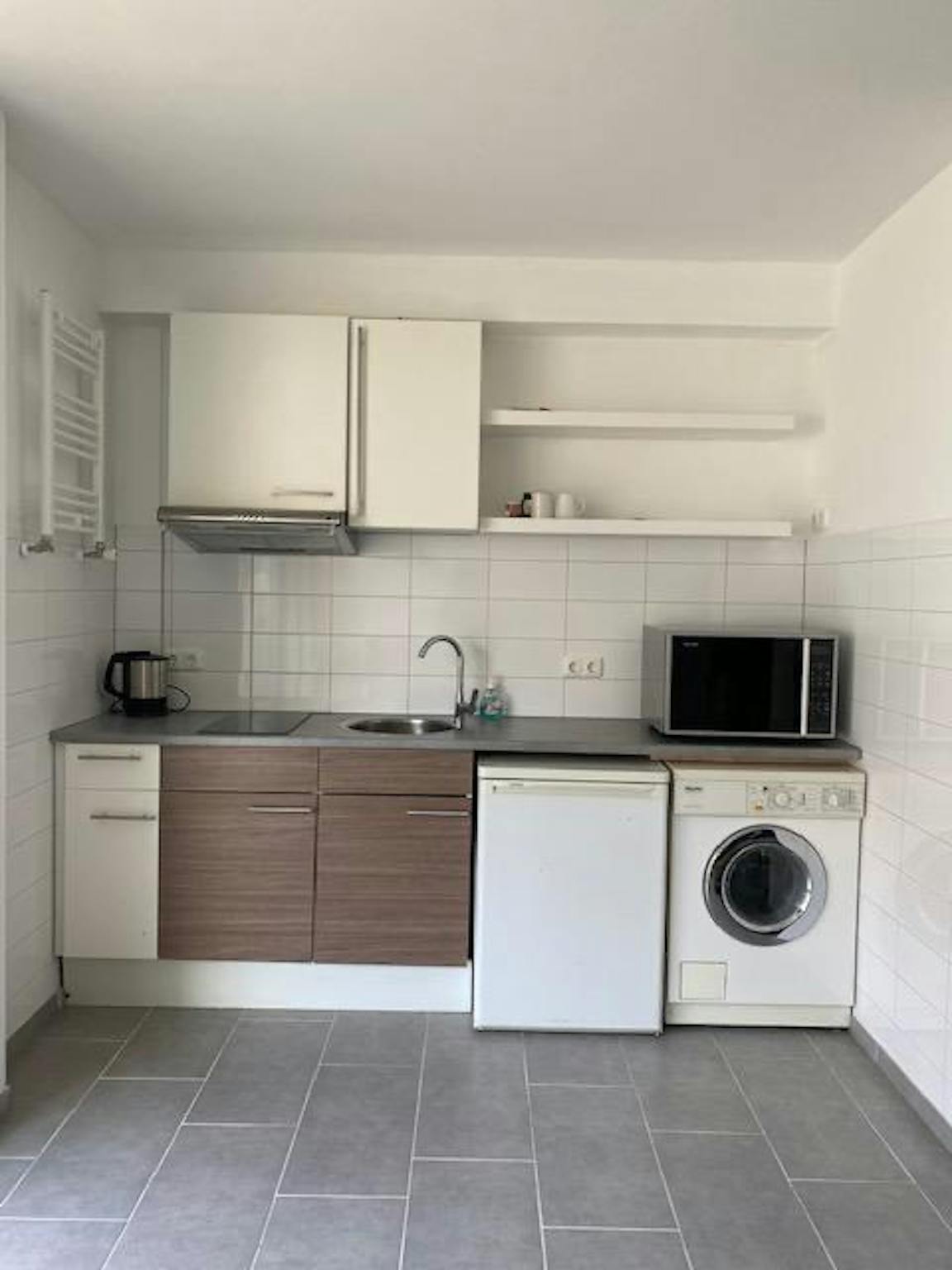 It is a very neat studio that comes with all desired comforts and also features a private parking spot inside a closed courtyard.