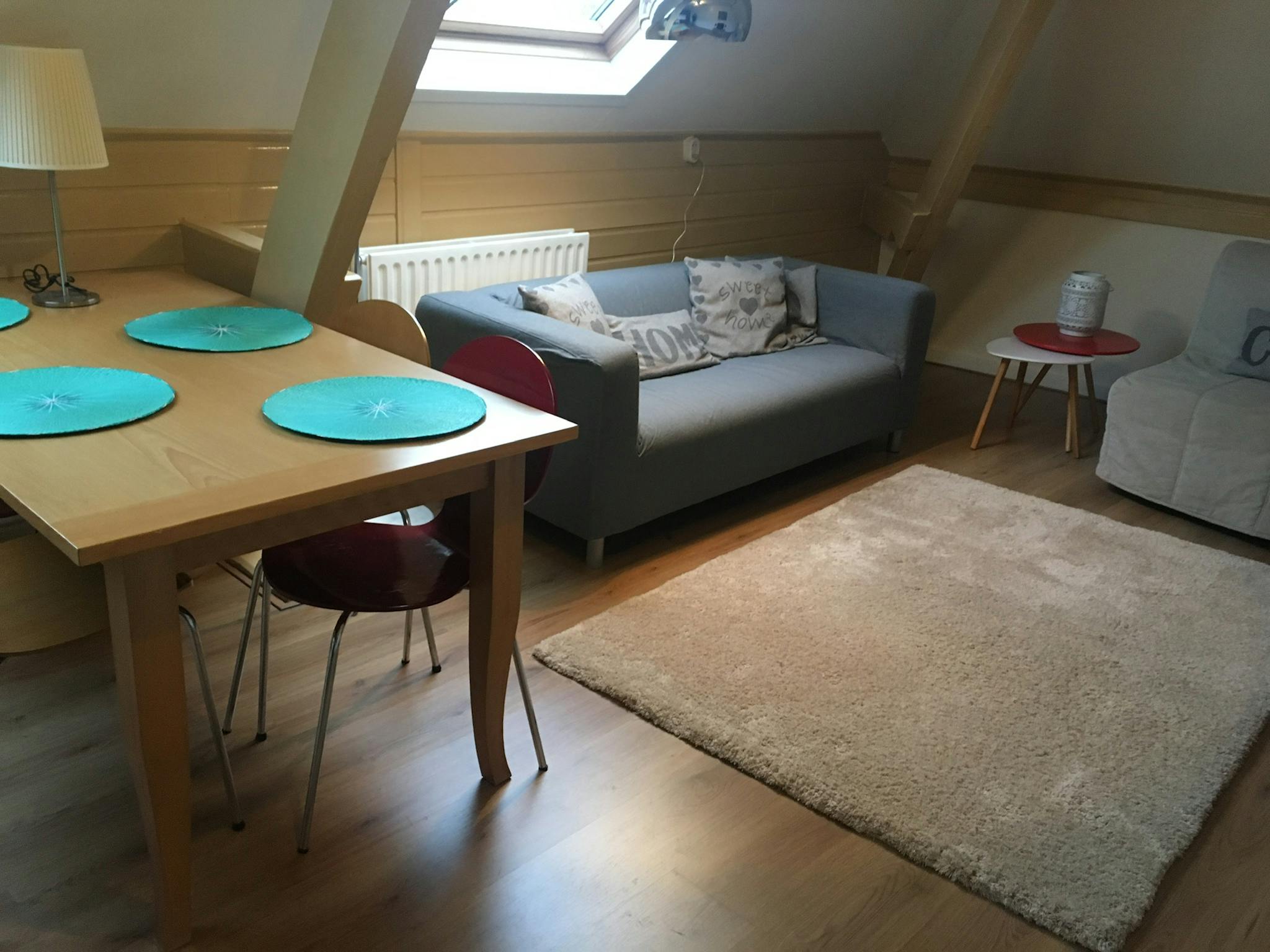 Large dining table and small kitchen with all basic necessities. A very central place in Arnhem.