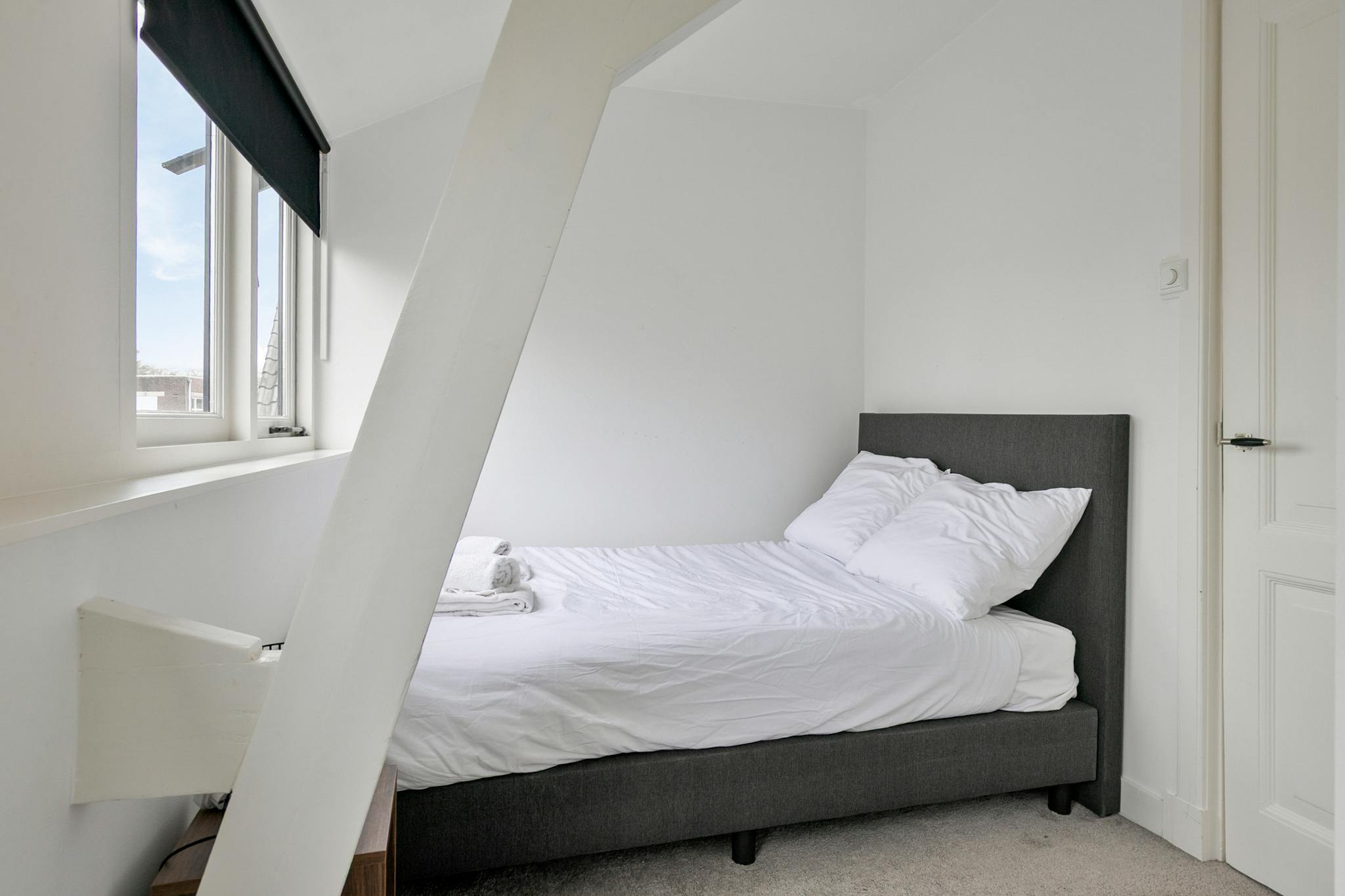 Hier bevindt zich de badkamer voorzien van douchecabine, wastafelmeubel, 2e toilet. Aan de voorzijde bevindt zich de eerste slaapkamer met dakkapel en vaste kast de 2e slaapkamer bevindt aan de achterzijde, vanuit hier is ook het daktterras te bereiken (ca 10,5 m2) bereikbaar is.
