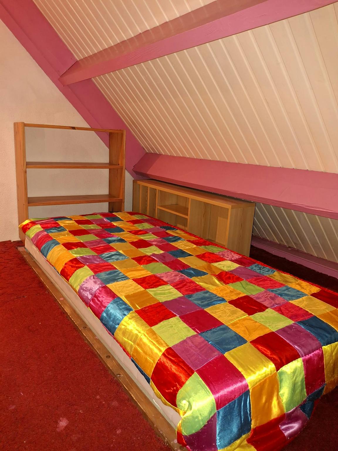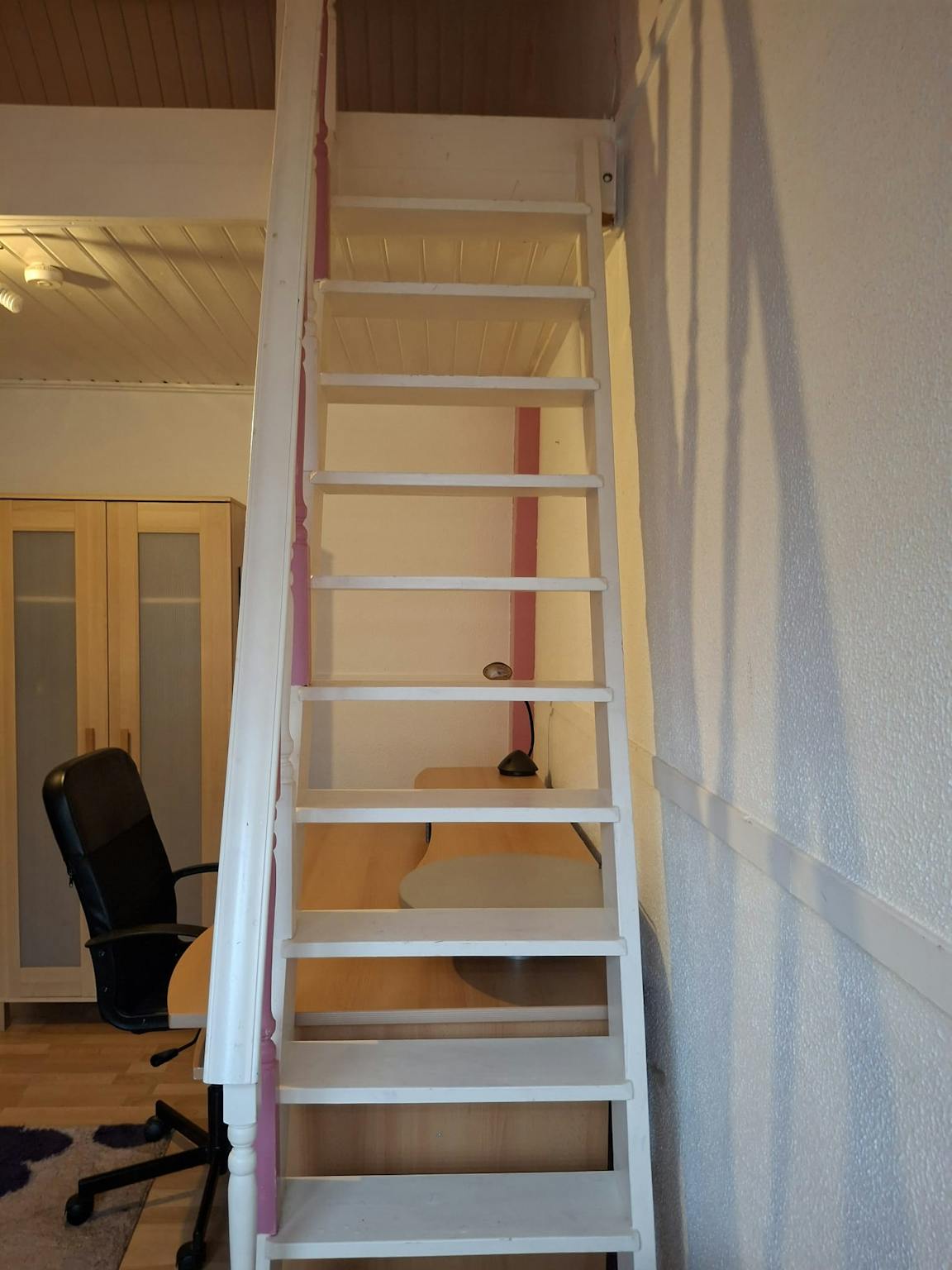 The offered room is the big room with the stairs on the right. The nice spacious room: 17.40 m2 split level (4.15 x 3 + 1.65 x 3) is fully furnished with a comfy bed, desk&chair, and a closet. The room is available from now. We rent for all and only decent, young, responsible, and quiet lady, don't miss this opportunity. Please also have a look at my other listings.