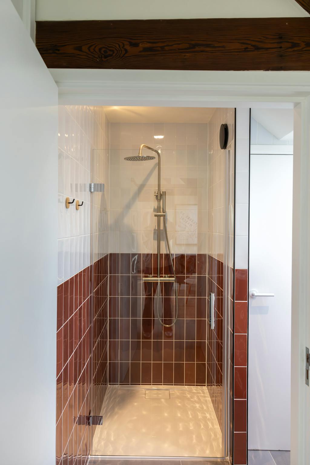 There are two bedrooms, one of which offers access to a private terrace. The apartment also features a modern bathroom with vanity unit and walk-in shower.