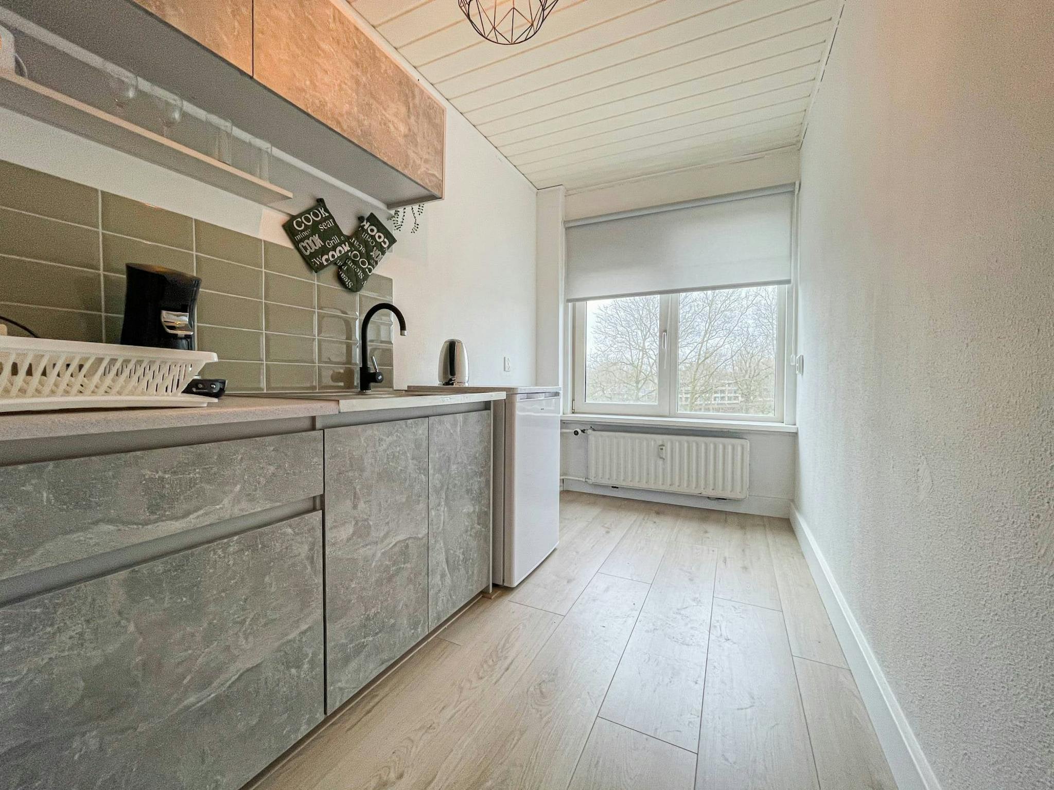 Located in the Crabbehof-North district, this recently renovated 35m2 studio offers a modern, stylish interior and all the essentials to live comfortably. With its own kitchen and private shower, you'll enjoy the luxury of privacy, while sharing the toilet with just one other tenant. The studio is turnkey ready, fully furnished, and thoughtfully decorated with contemporary finishes and cozy details to make you feel right at home from day one.