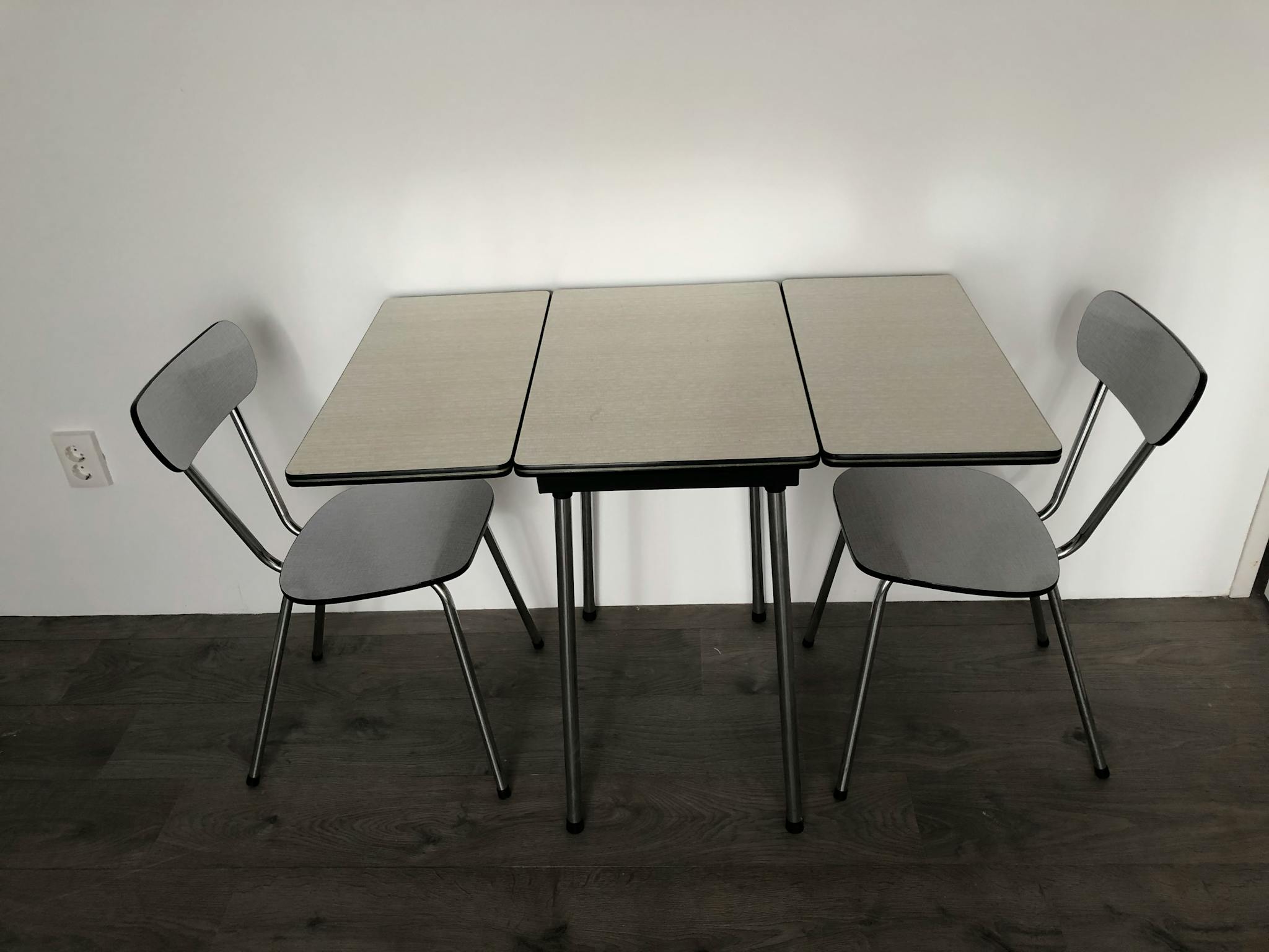 Clean room with heating, private lock, large windows. Room has a double bed, wardrobe and table with chairs.