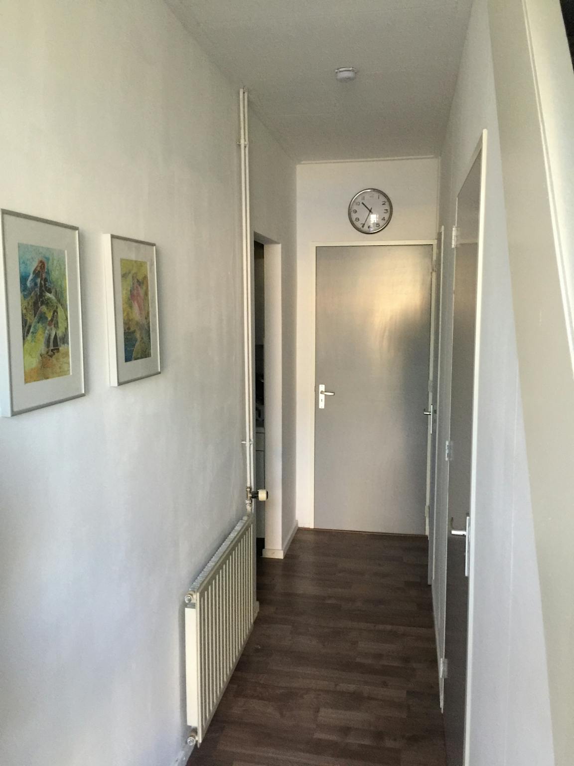 Clean room with private sink with hot and cold water, heating, large window and well. Renovated in 2025. Room has a double bed, wardrobe and table with chairs.
