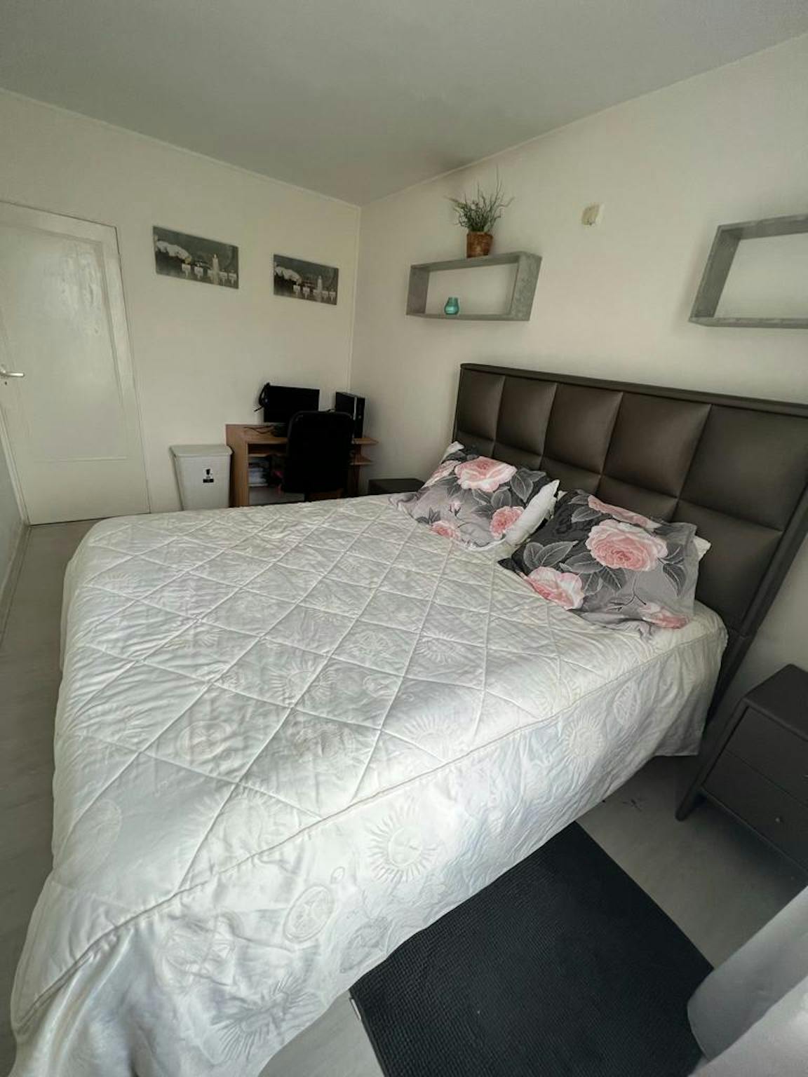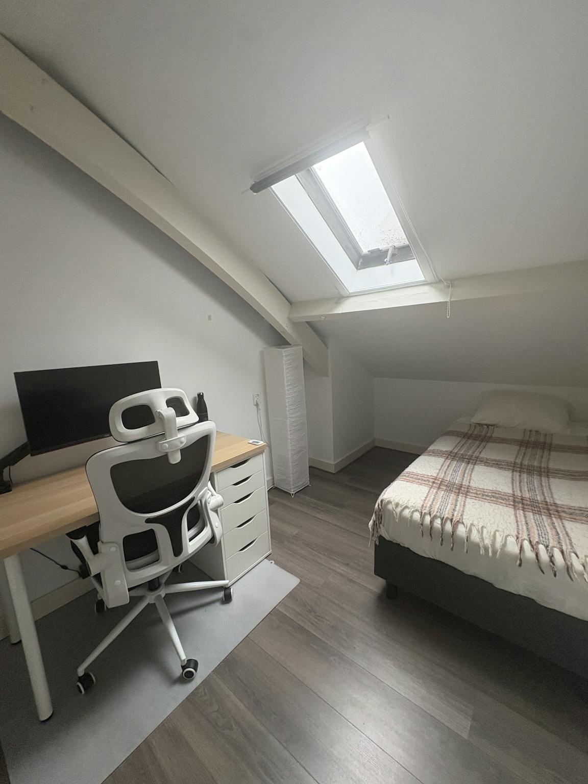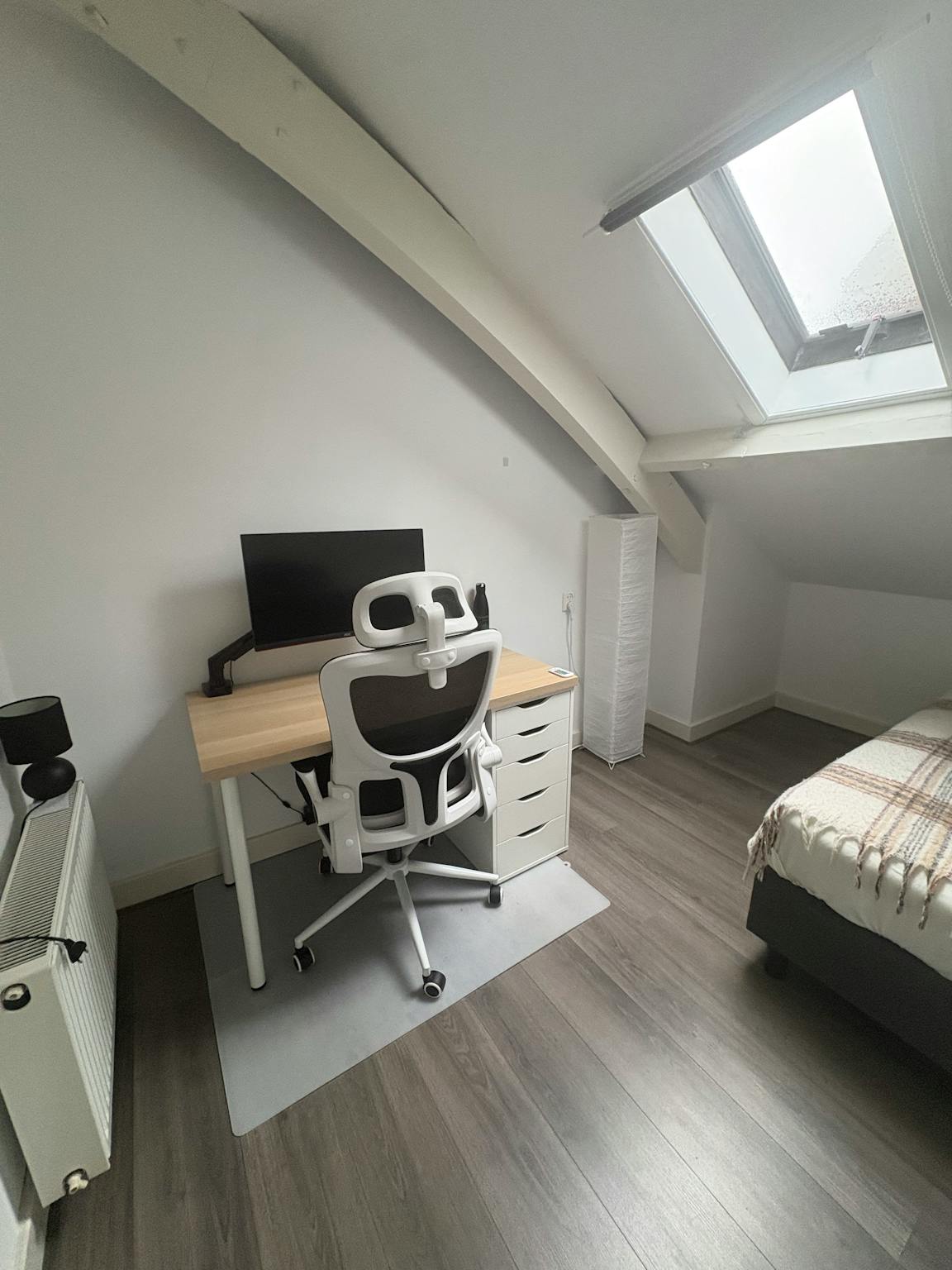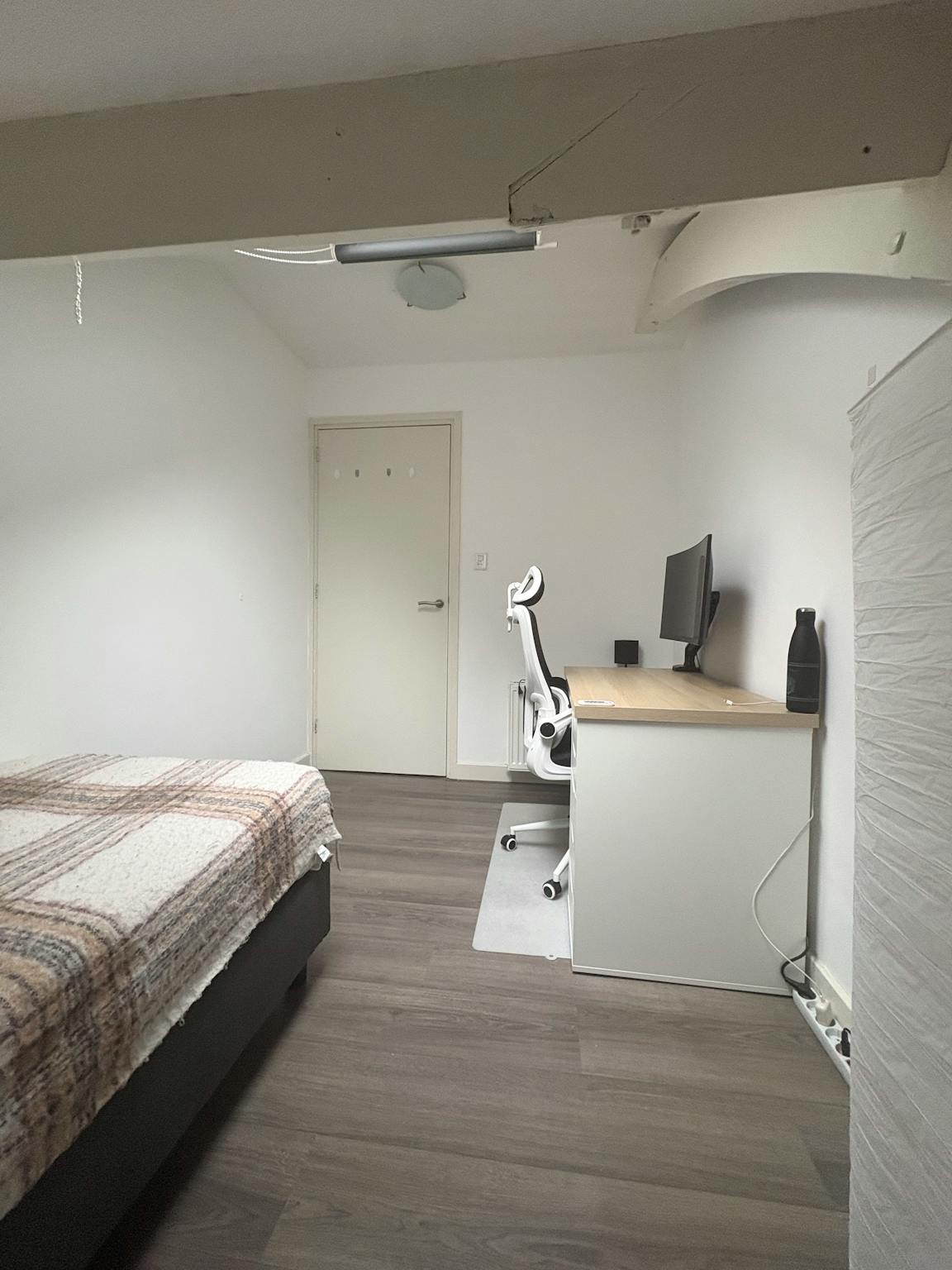Camera da letto per una persona con finestra, termosifone e scrivania con monitor