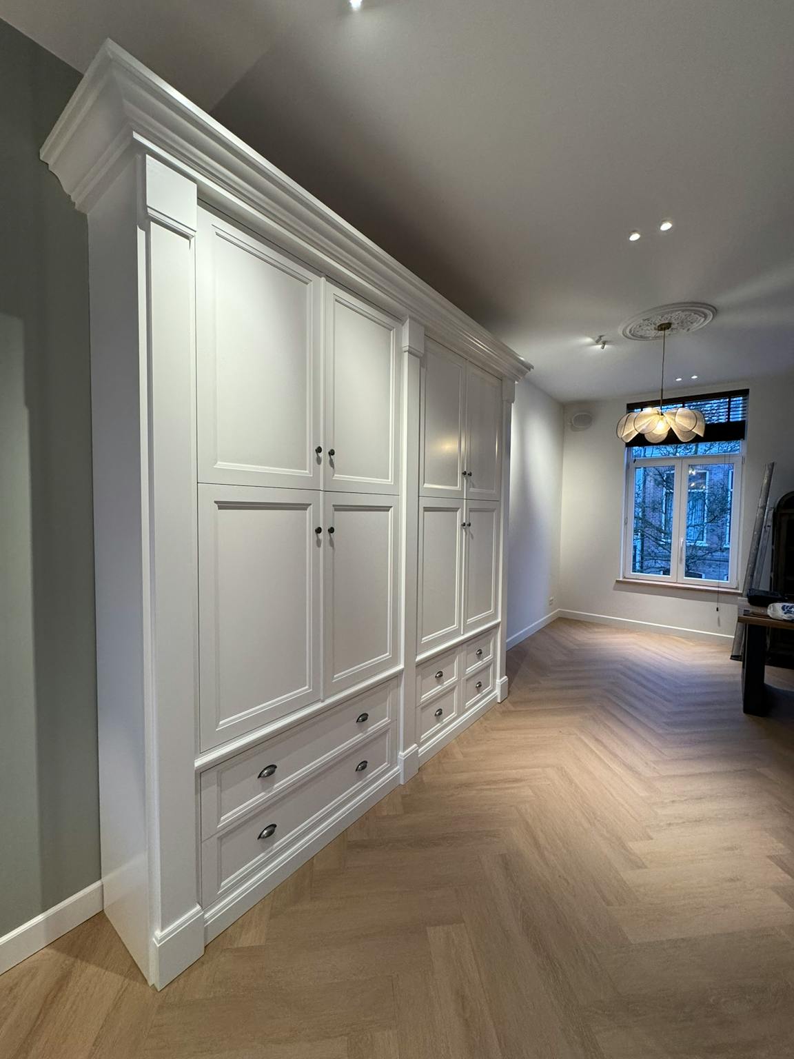 This fully renovated apartment of 118 square meters is spread over the first and second floors. The spacious living room features impressive 3.20-meter-high ceilings, abundant natural light, and a lovely view over the Ruysdaelstraat and Schotersingel. A professionally designed lighting plan enhances both atmosphere and functionality throughout the apartment.