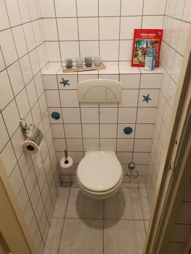 De keuken geeft toegang tot het ruime was/stook hok en de WC. Die is voorzien van volledige betegeling en een fraai hangtoilet.