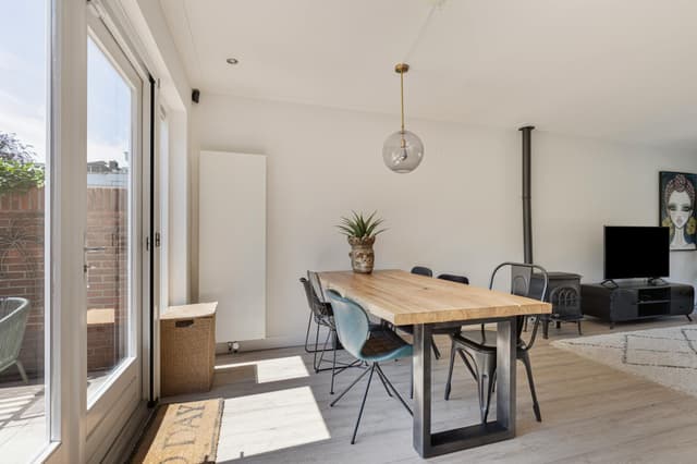 This charming, fully furnished house is located on a quiet and child-friendly street in Hilversum-Noord. The house features a spacious and bright living room with an open kitchen, equipped with modern built-in appliances including a dishwasher, oven, microwave, refrigerator, and gas stove. At the rear, there is a sunny garden of approx. 50 m2, including a garden house, perfect for relaxing on long evenings or enjoying drinks outdoors.