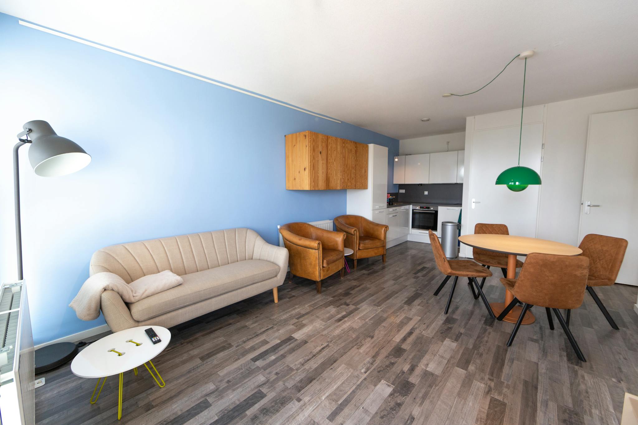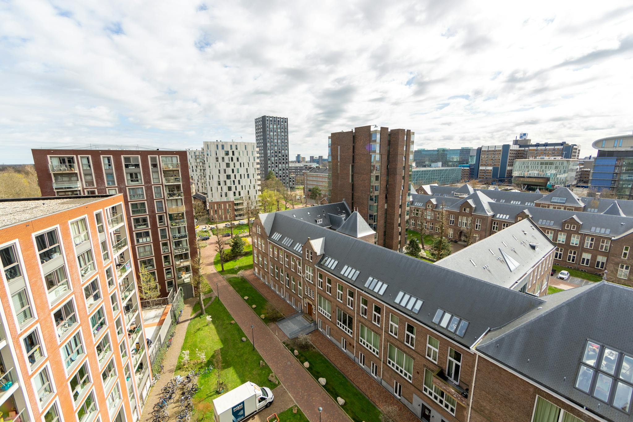 Stunning fully furnished apartment (58 m2) on the 10th floor of the modern Clusius complex in Leiden's Pesthuiswijk. Built in 2017 with an energy label A, this exceptional home offers sweeping panoramic views over Leiden from every room.