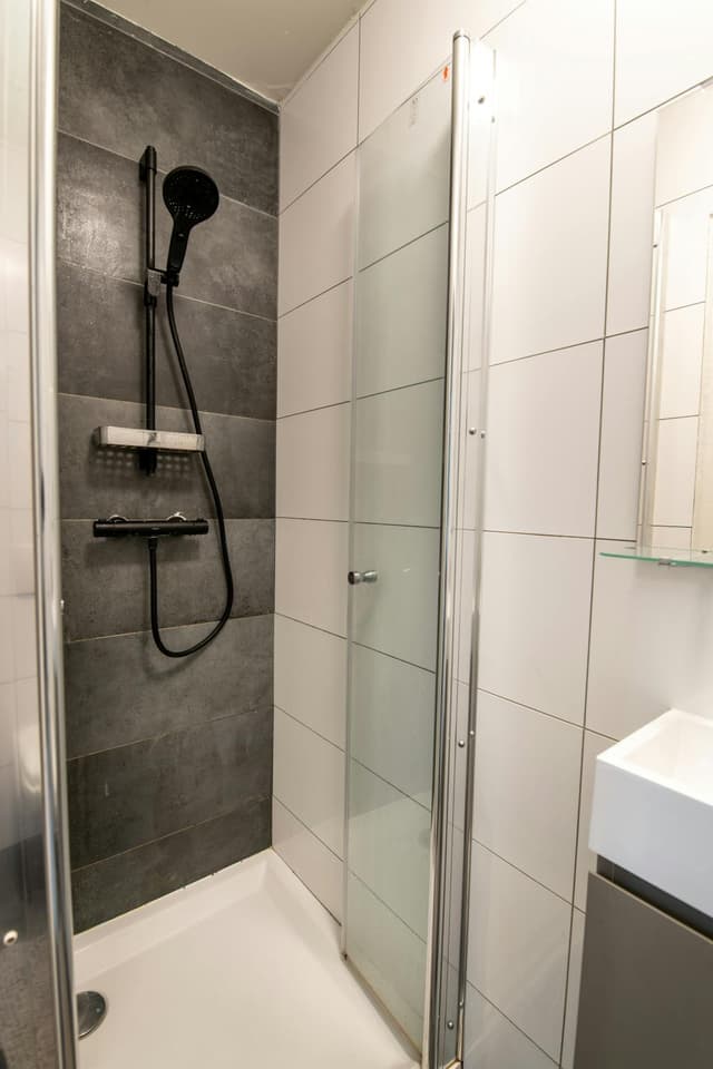 Woonkamer met aparte keuken met alle inbouwapparatuur en aparte slaapkamer met aansluitend badkamer. Badkamer met eigen wc, wastafel en douche. Gebruik van gezamenlijke wasmachine in de kelder. Leeg opgeleverd. Tegen 200 euro meerprijs volledig gemeubileerd