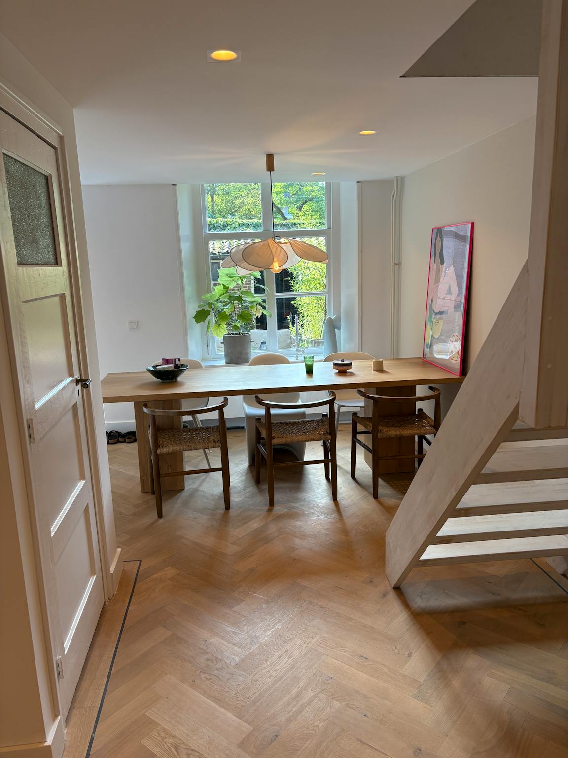 The house is equipped with a Sonos sound system, an alarm system and in the living room you can set the lighting to any desired atmosphere.
