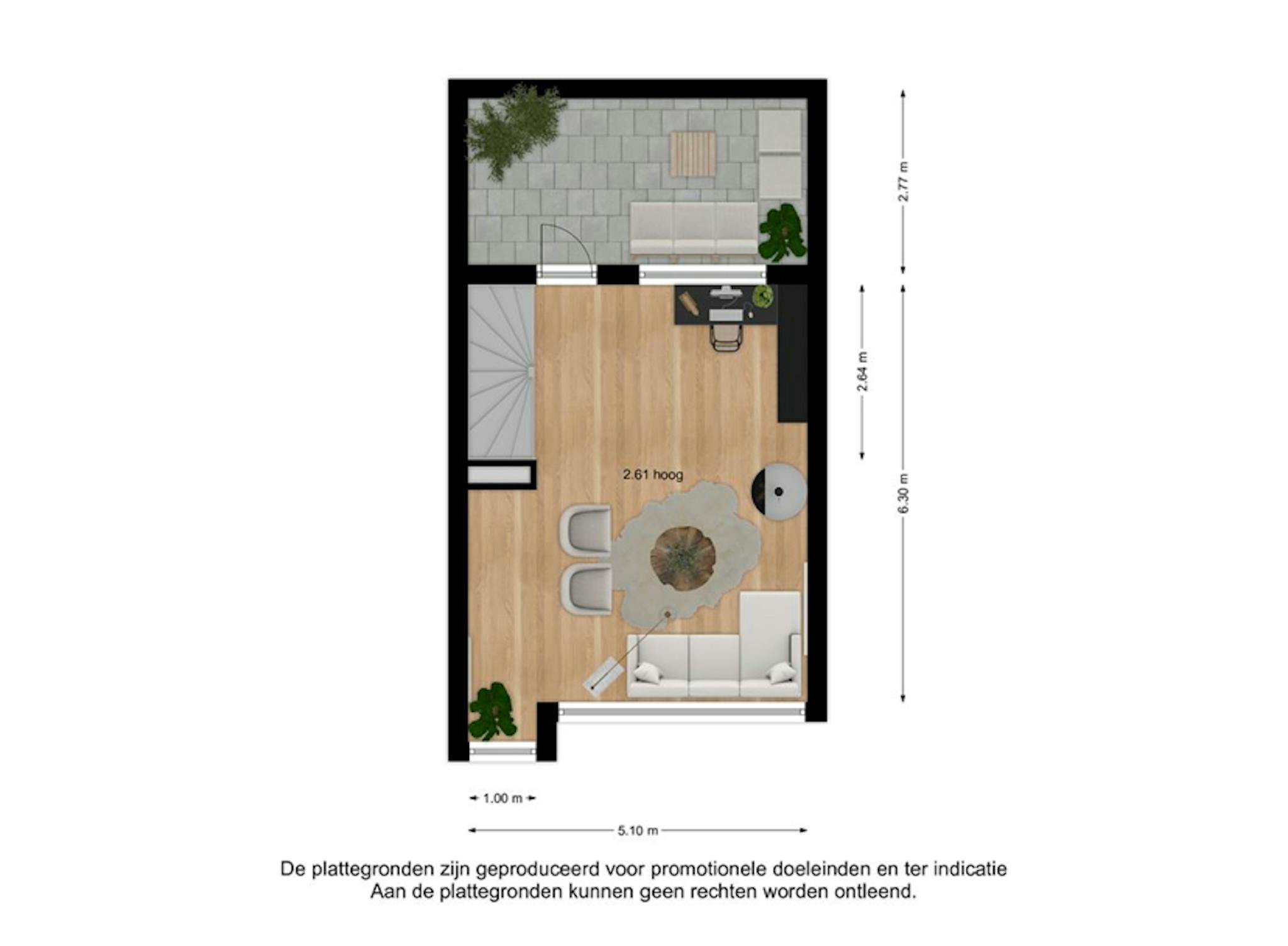 The bright living room features a wood-burning stove, creating a warm and cozy atmosphere. The living area offers a beautiful view overlooking the park, providing a calm and green environment.