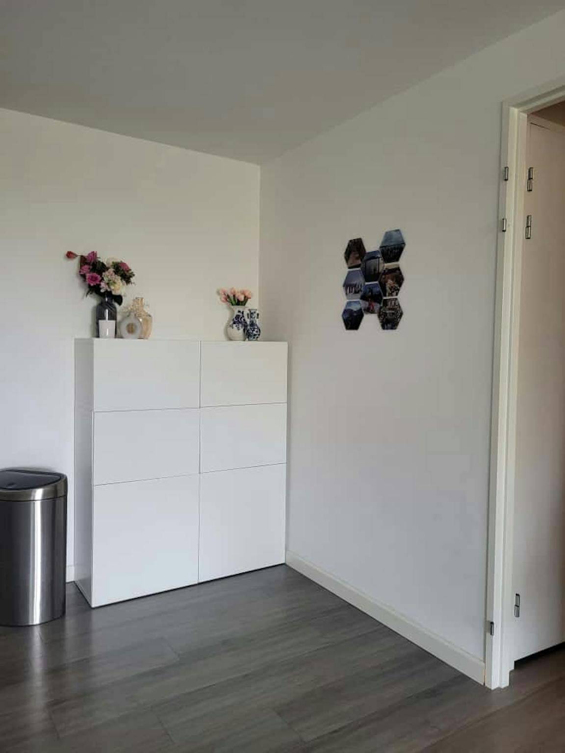 The appartment has a large living room with kitchen and 2 large bedrooms. One with a walk in closet and the other bedroom is currently used as a working space. But it can also be another bedroom if preferred.