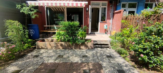The garden is accessible via large glass sliding door. The garden has an terrace and a large new shed (6 m x 3,7m).