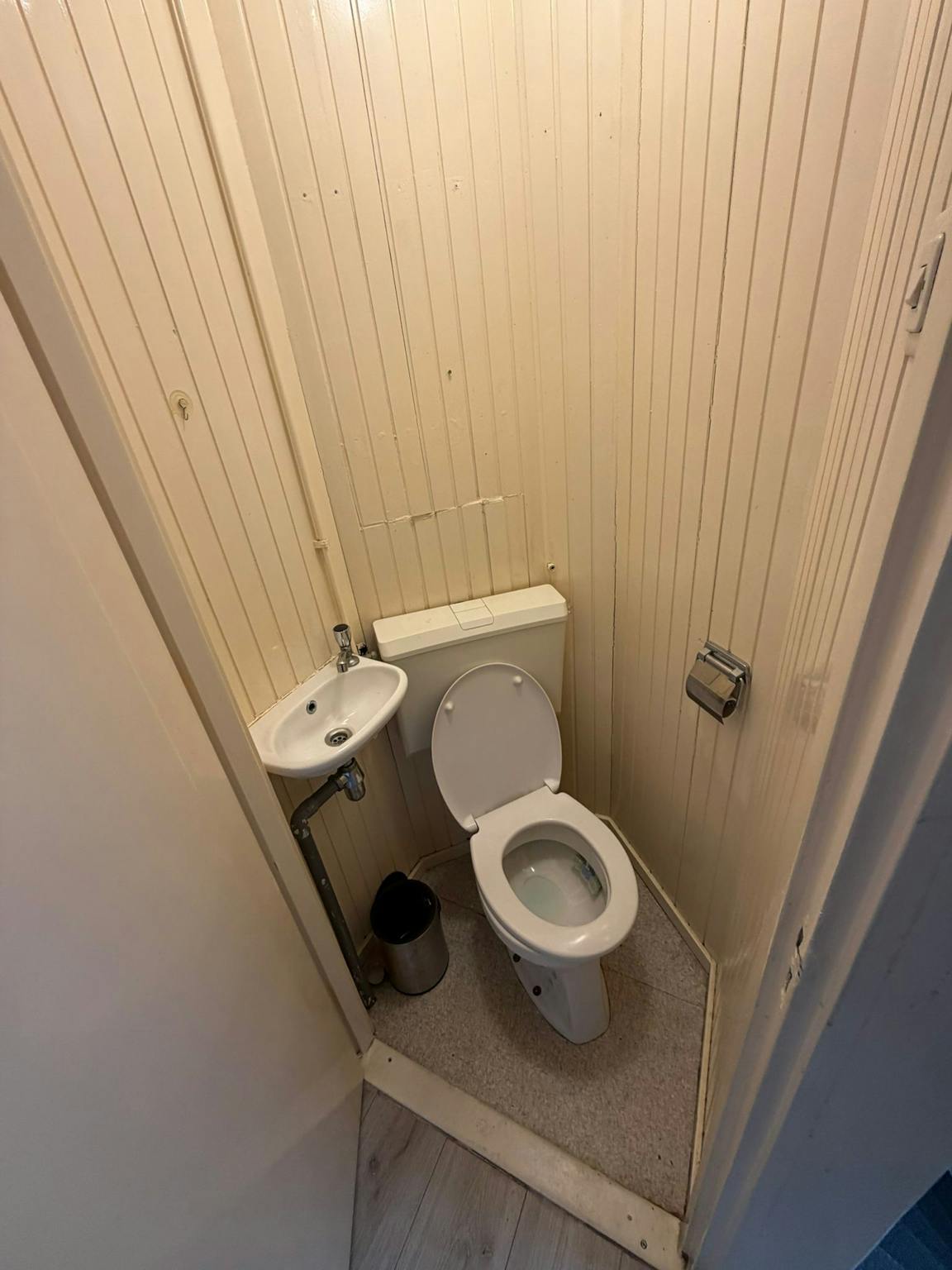 The apartment is spread over multiple floors. The entrance is accessible via stairs. On the first floor, you will find the living room, a toilet, and the bedrooms. On the second floor, there is a bathroom and a separate second toilet.