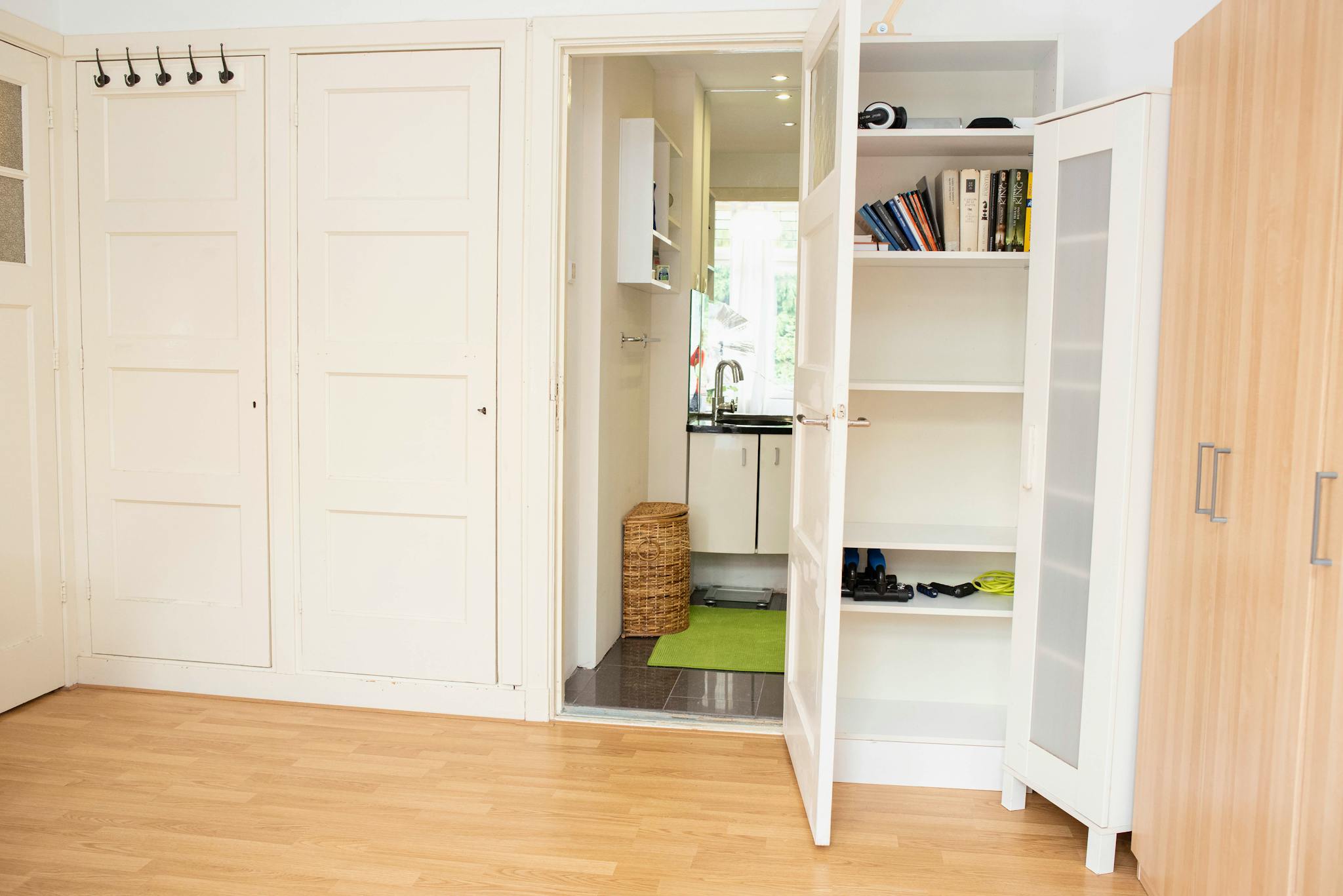 The studio is located at Bijlwerffstraat 17a1 (Rotterdam) the total area are 34 m2, consists in living/bedroom 15m2, kitchen 8 m2, bathroom 3m2 and balcony 3 m2, utility room with wasmachine and hall 4 m2. Rent is 1400 Euro all included (appliances and utility's, gas, water, heat, electricity, liability encourage, taxes and internet). The studio is situated at 12 minute walking distance to city center, 300 meters distance from metro station Blijdorp and within a 5 minute walk to a nice, large park (Vroesenpark)
