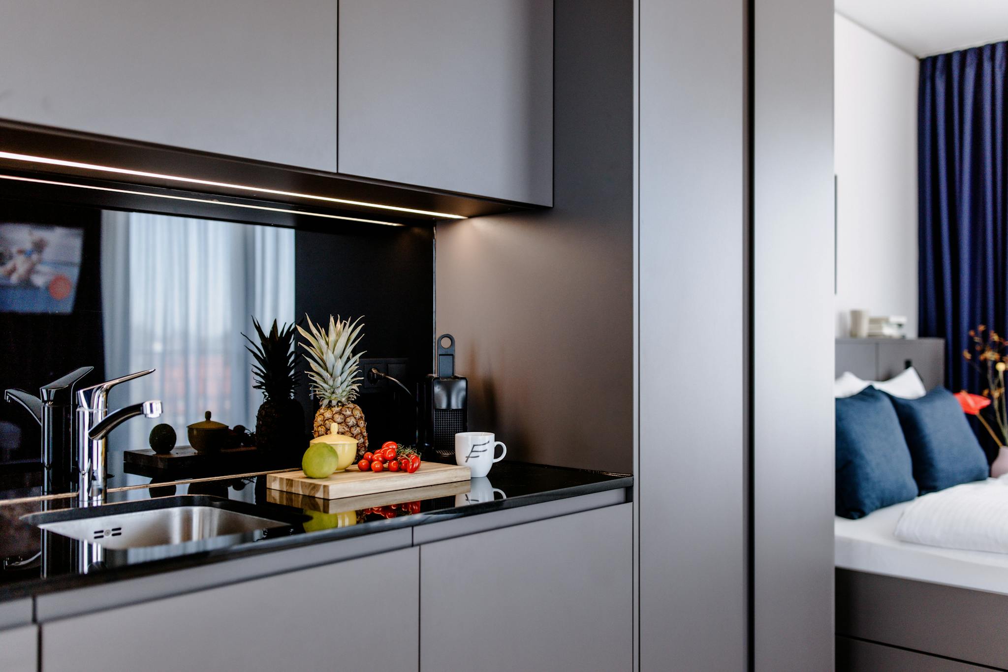• Kitchenette with ceramic hob, dish washer, microwave, Nespresso machine, kettle and basic kitchen equipment