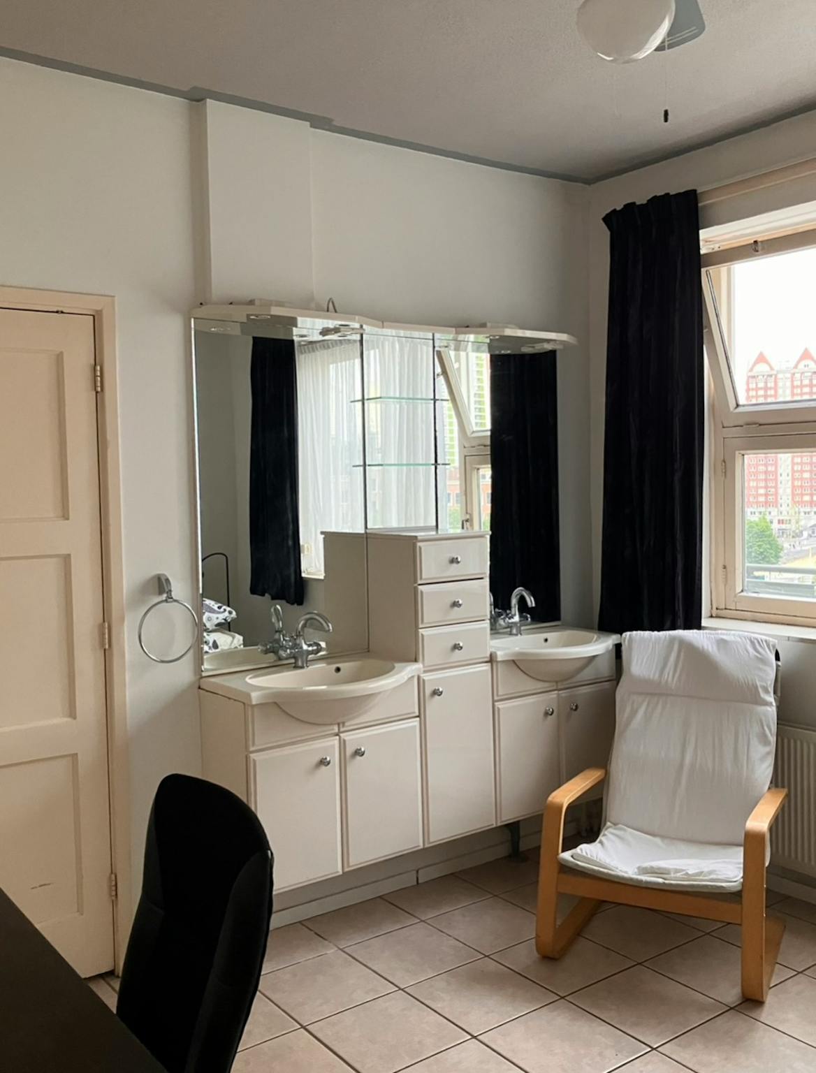 Non-SmokingNot allowedNice room for students in the city center of Rotterdam, next to Metro Beurs, Train station Blaak, Tram, bus and shopping center. You share with two other students, and the apartment has a kitchen and separate bathroom. From the given deposit will be €125,-- charged for the costs of HA. The room has its own sink and a big closet.