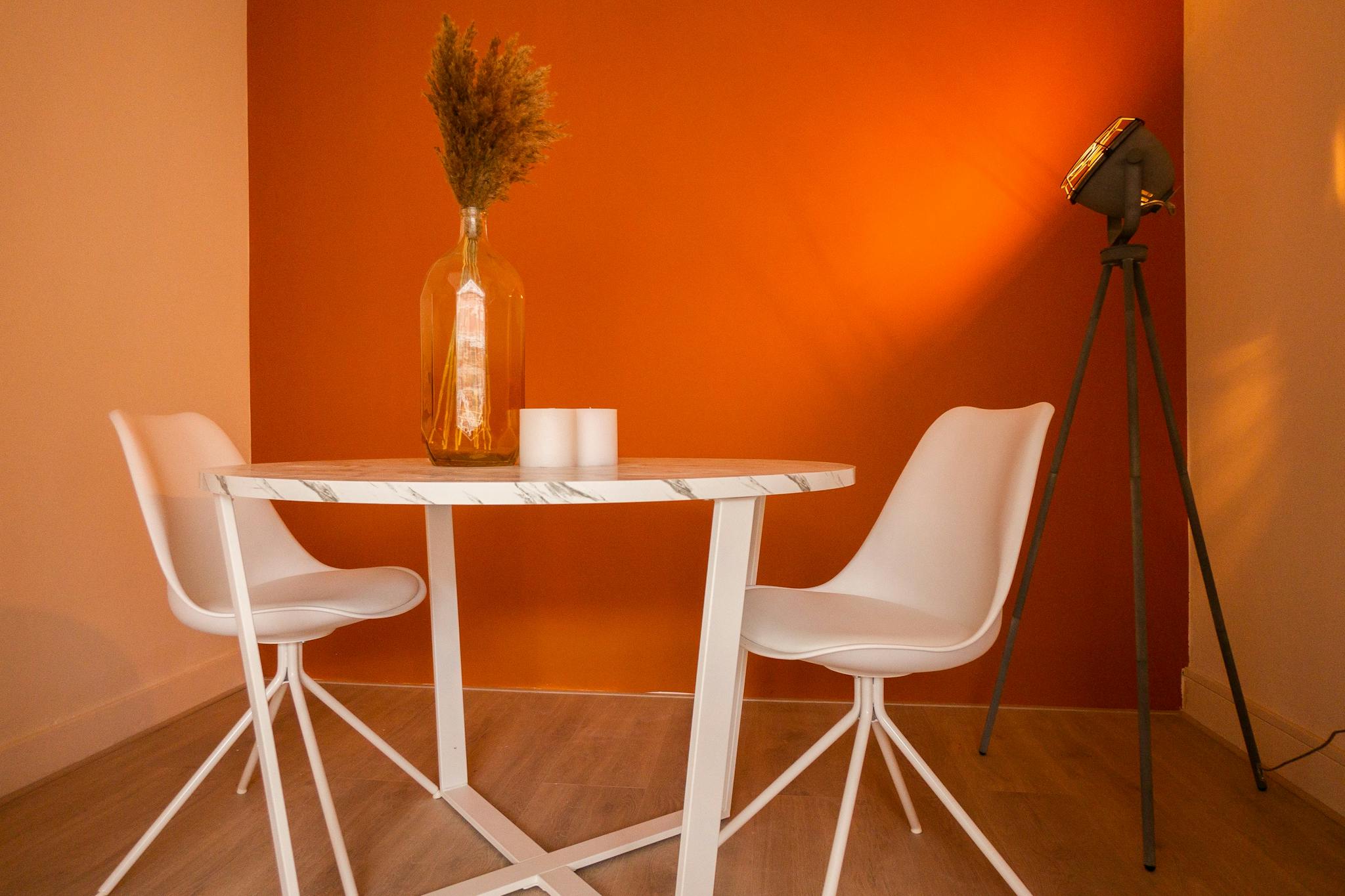 The cozy studio is attractively furnished with a nice 2-person bed, a table, 2 chairs and a wardrobe brush. You share the kitchen, bathroom and toilet with 2 other residents.