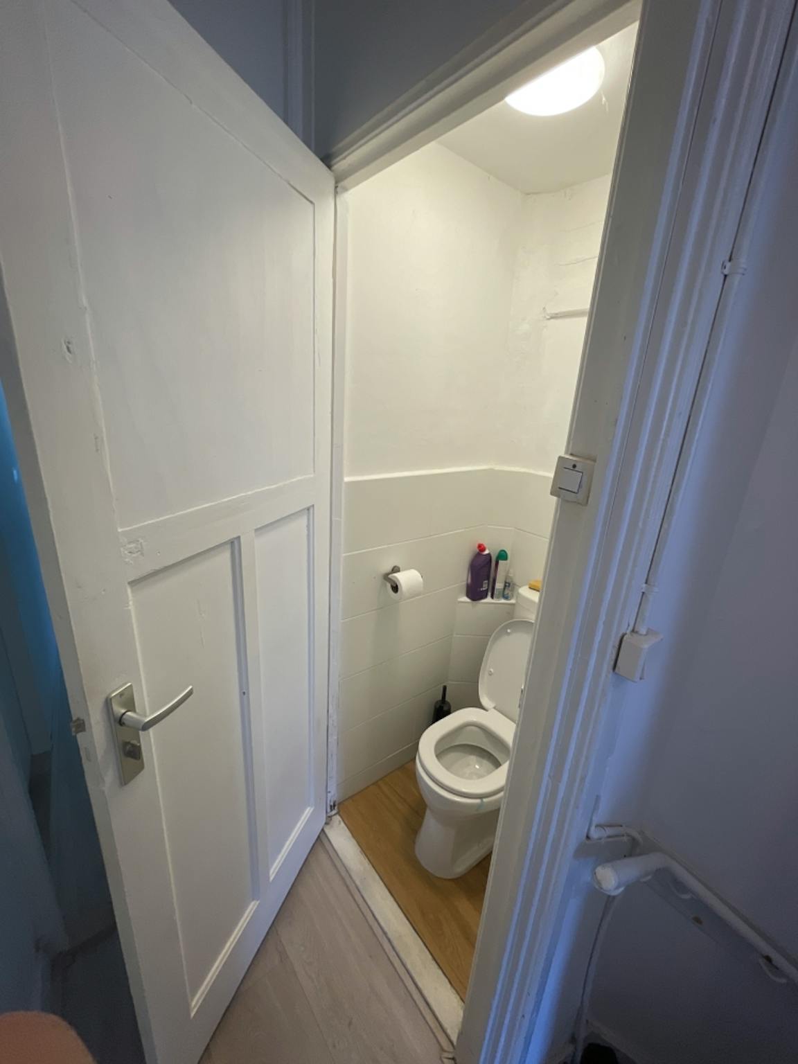 The room is located on the first floor at the front of the property. The room is approximately 20m2 and is very spacious. There is a nice alcove so you have a separate dining area. The studio feels very spacious due to the high walls.