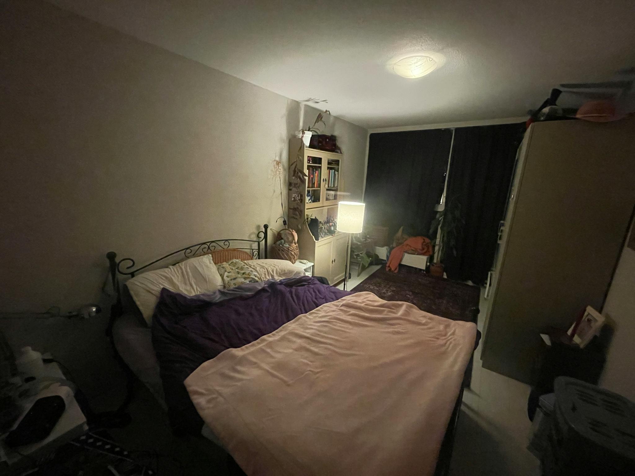 Large bedroom in a two-bedroom skyscraper apartment. Great views of the Rotterdam skyline, modern amenities (dishwasher, large bath tub), nice neighbors, all in the heart of the historic maritime district: