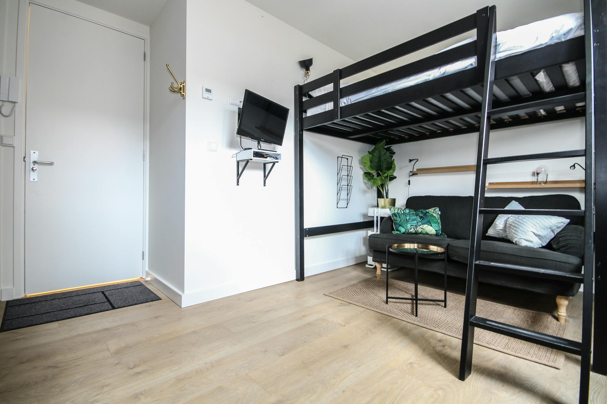 We provides fully furnished and hooked-up studios and apartments. You can just move in without any worries about furniture or utilities. The studio is well isolated and the kitchen includes what you would need to cook yourself a meal. The studio includes a smart tv, a washing machine and a dryer, microwave and an oven. Further, this studio has wifi and the tenants can make use of the shared garden. Located at the 3rd floor.