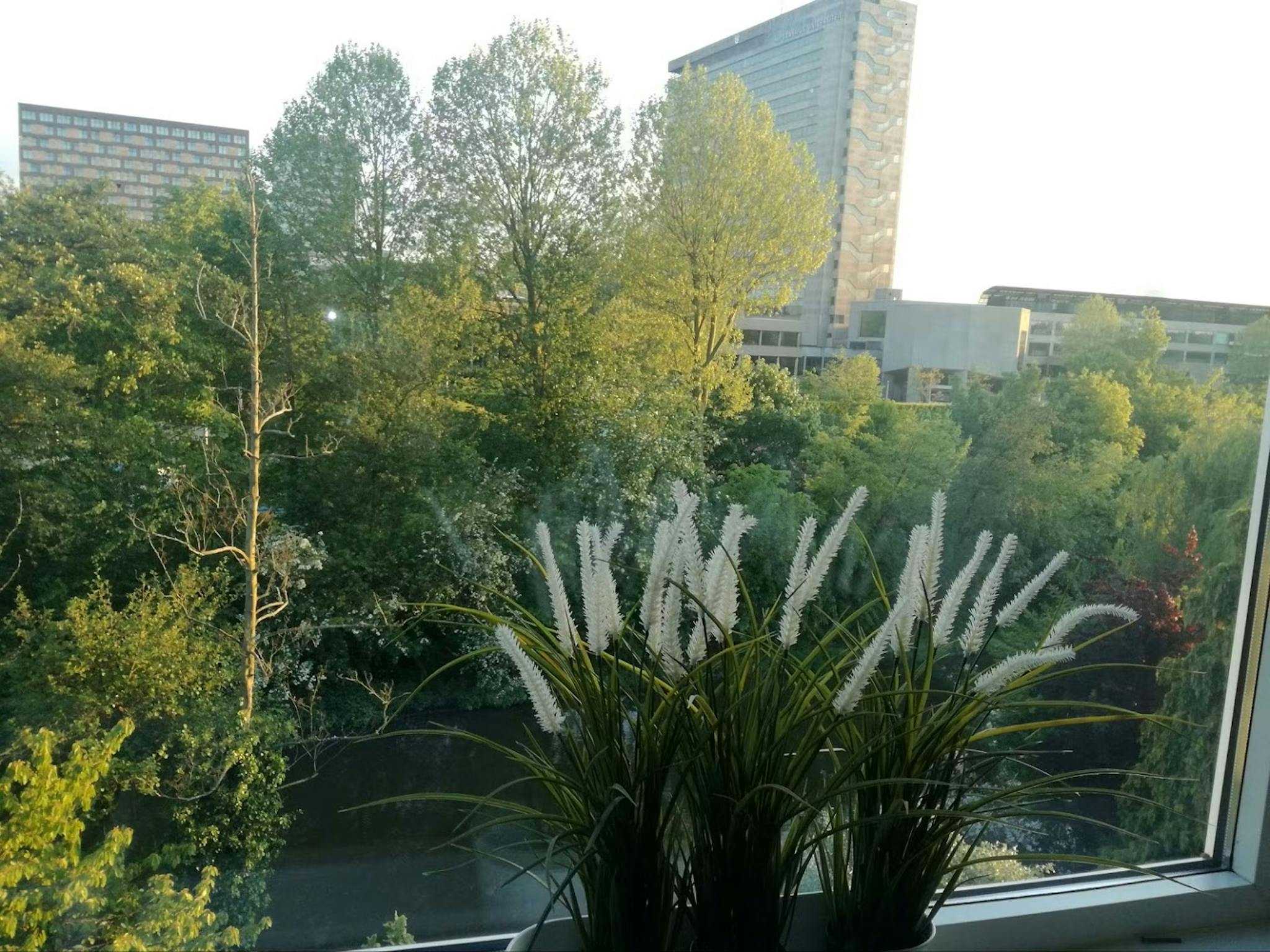 What a wonder, you wake up in the morning sun with the silhouette of Erasmus University. It's literally at the next door to the university, 3 min walk!