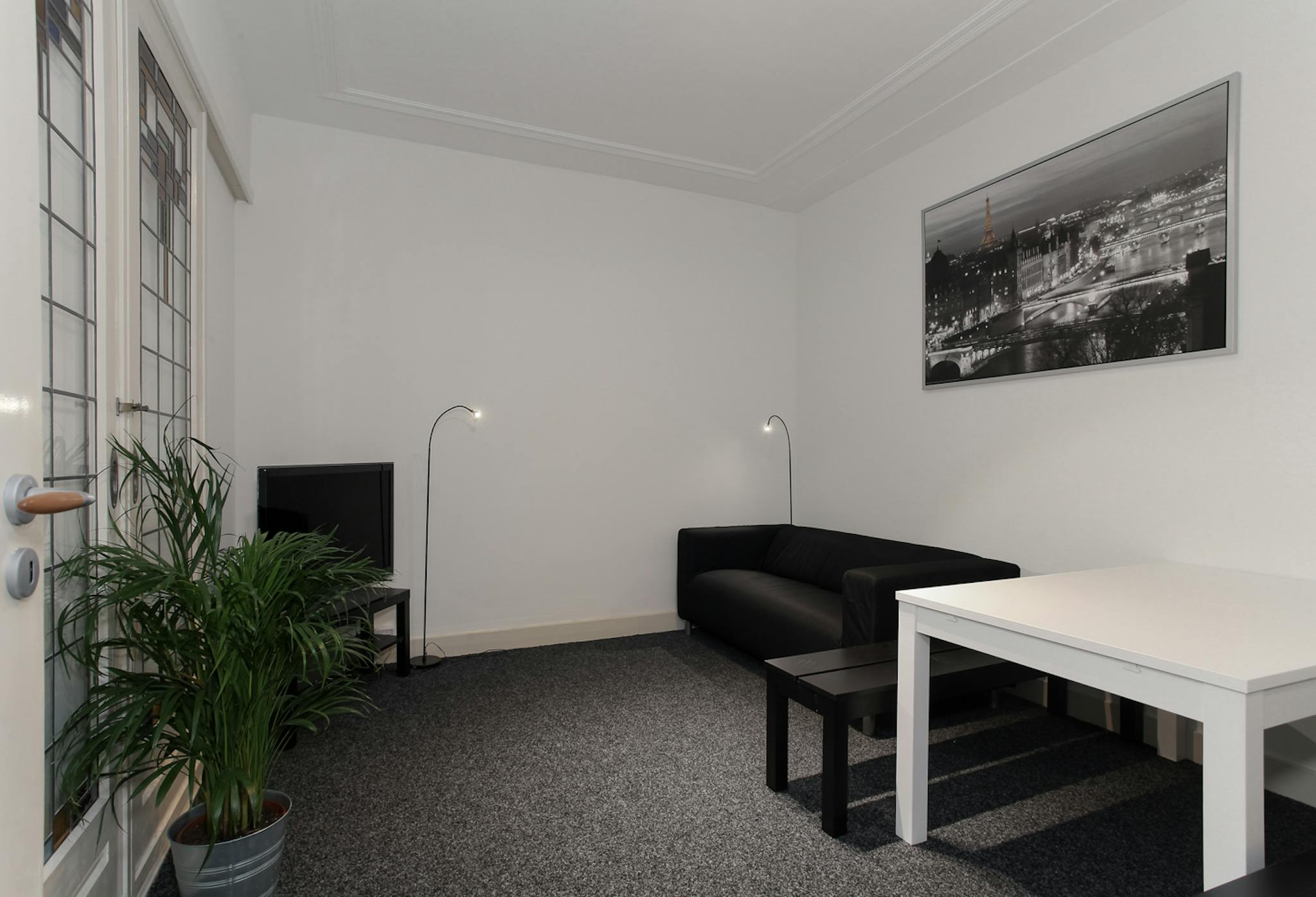 A townhouse of quaint Dutch architecture with four spacious flatshares, living room, kitchen, a modern bathroom & toilet. The apartment is all furnished and equipped with an electric system and self-controlled central heating, window covers, carpet, spotlights.