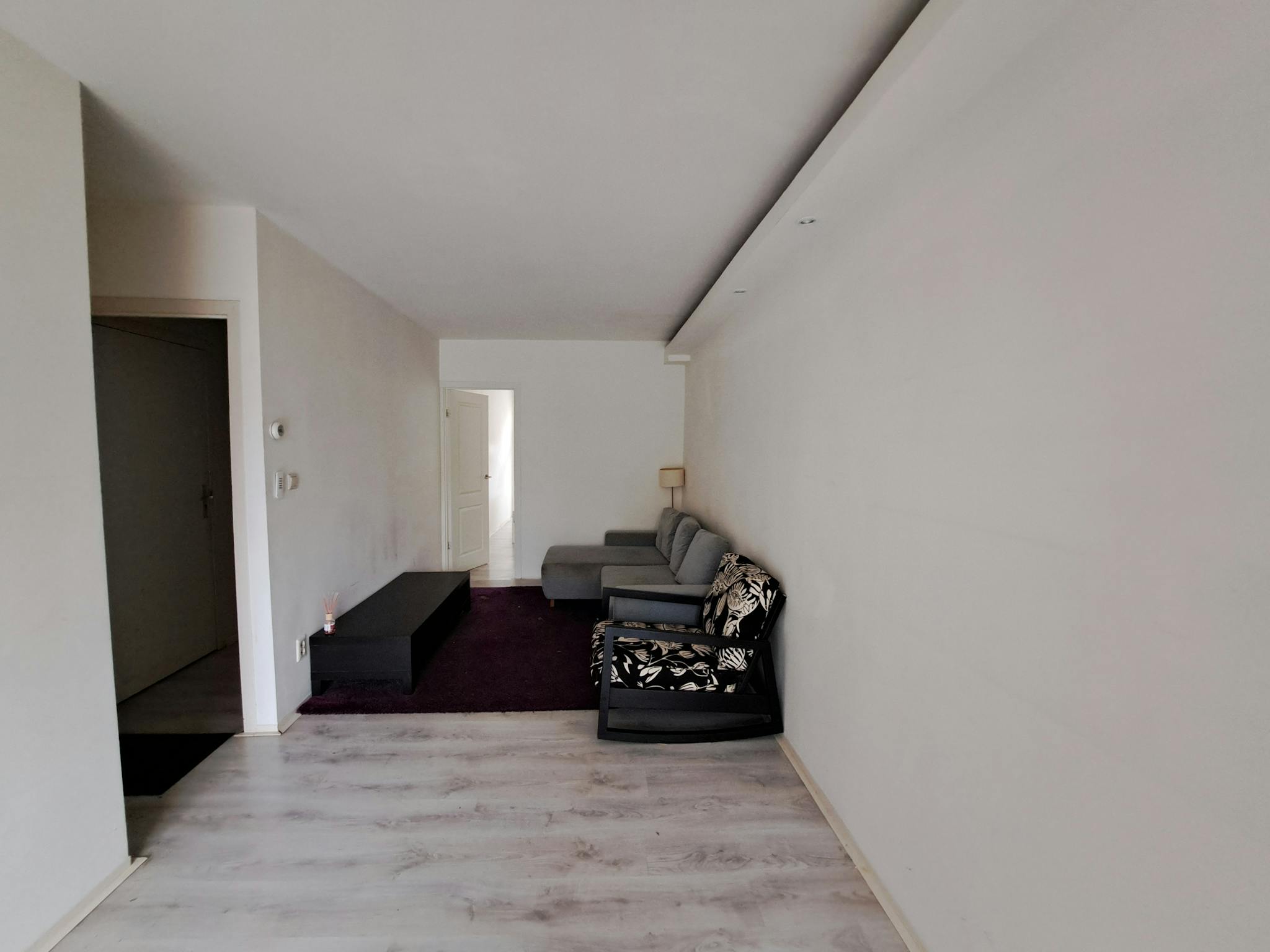 📍 First Floor: Bright and spacious living room with an open kitchen. The living area is stylishly furnished with a comfortable corner sofa.