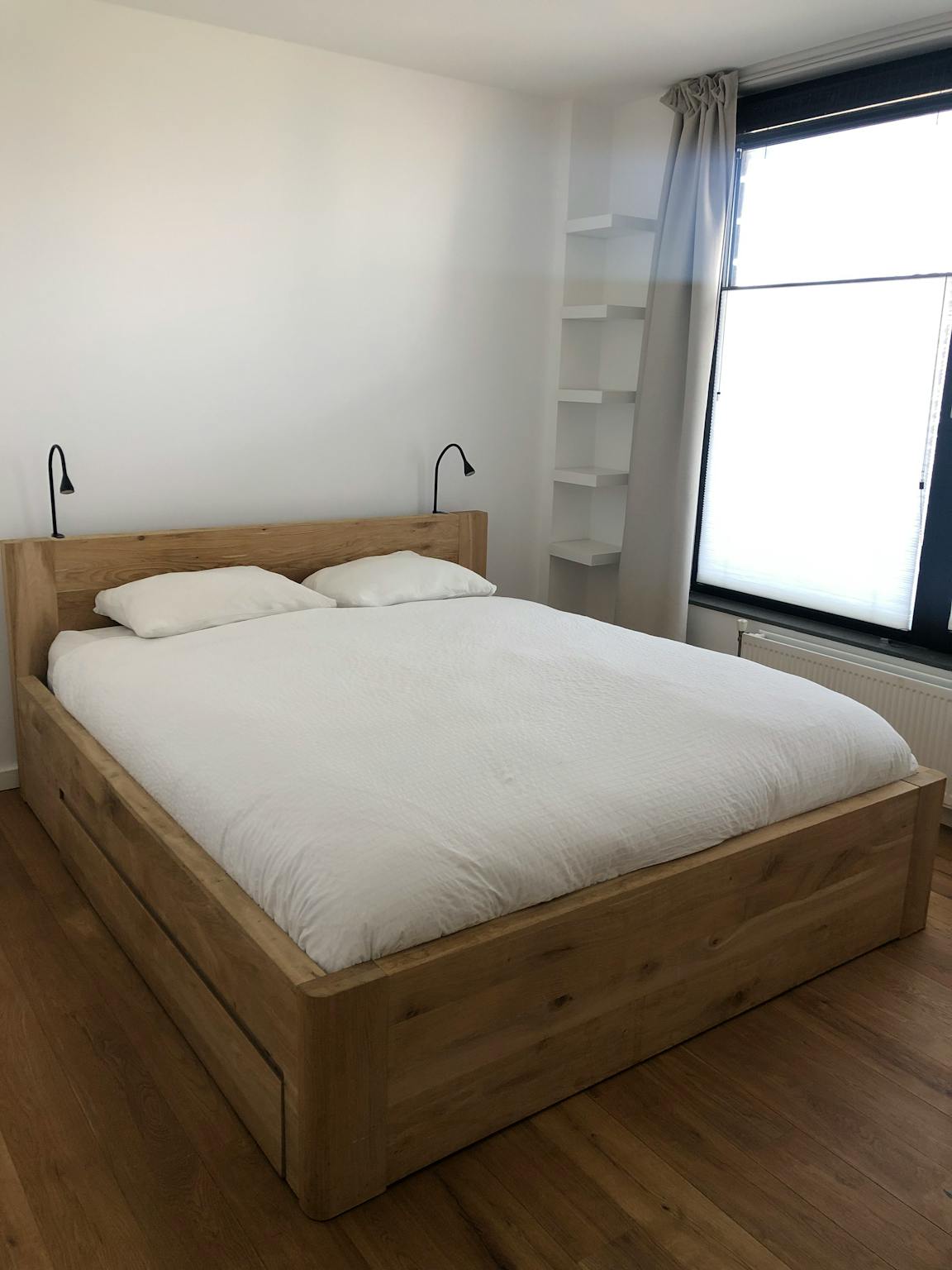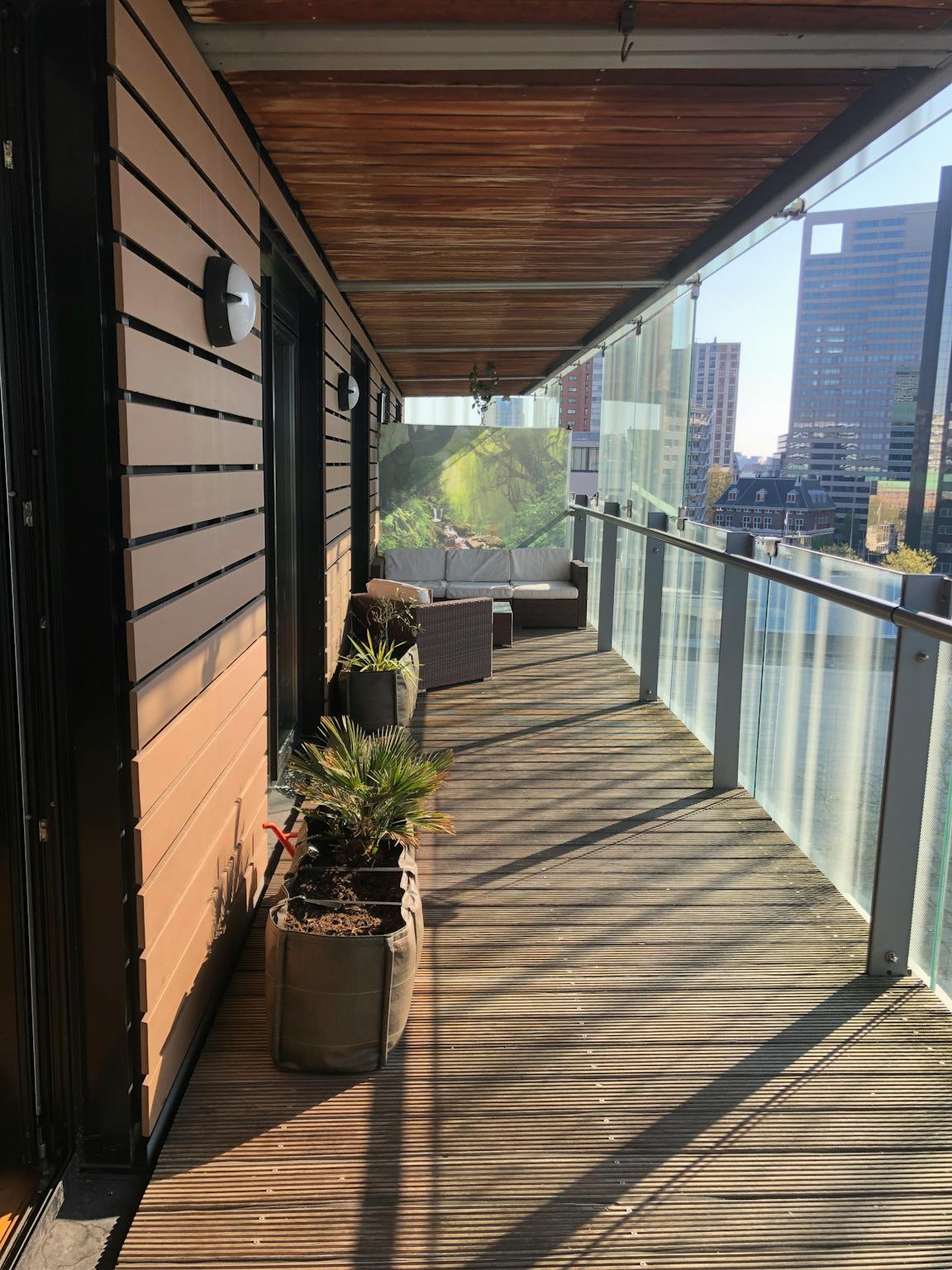 Luxurious, light and spacious appartement with large sunny roof terrace and private indoor parking overlooking the skyline of Rotterdam, right in the middle of the vibrant center and includes access to sauna and gym. Perfect apartment for expats, couples or small family.