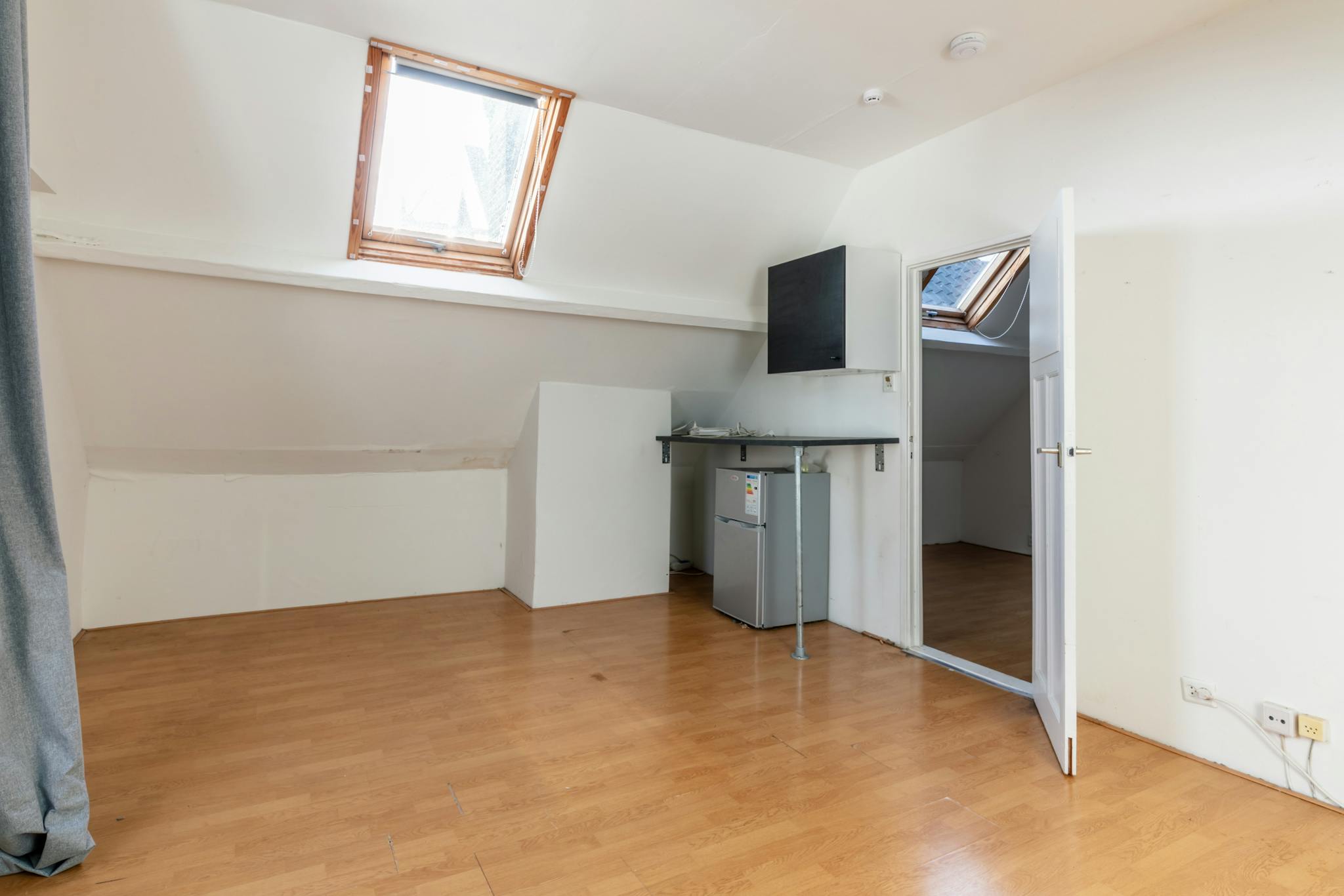Overloop met een separate toiletruimte voorzien van fonteintje. Vanuit de overloop is er toegang tot de woonkamer, de keuken en een extra kamer. De ruime en lichte woonkamer is gelegen aan de voorzijde van de woning en kenmerkt zich door grote ramen en een prettige lichtinval. Aan de achterzijde bevindt zich een ruimte die uitstekend kan worden gebruikt als eetkamer of als extra slaapkamer. Tevens is aan de achterzijde de keuken gesitueerd, voorzien van een net keukenblok met een koel/vriescombinatie, een nieuwe vaatwasser, een oven en een magnetron. In de keuken is daarnaast de wasmachine opgesteld. Vanuit de keuken is er toegang tot het balkon.
