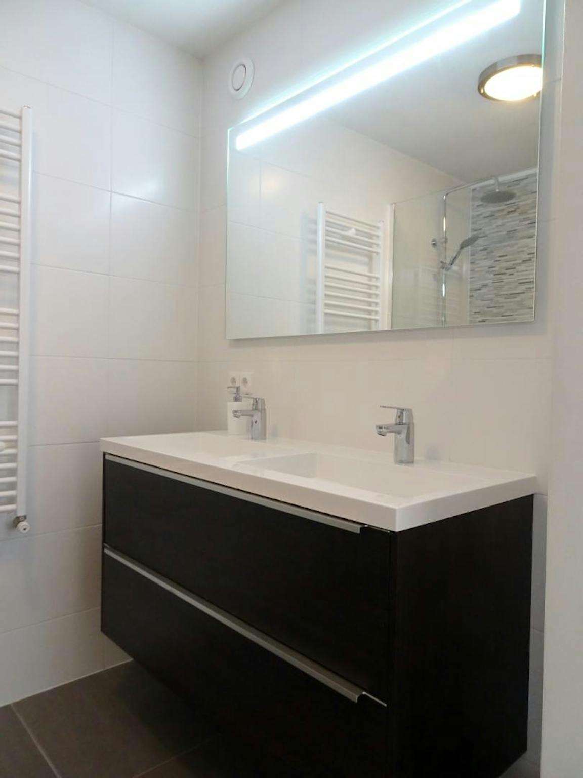 Entrance, hall, seperate modern toilet, bright living room with entrance to the lovely balcony facing south with a-ma-zing view! Half-open modern kitchen, master bedroom and modern bathroom with double sink and shower. seperate cabinet with washer and dryer.