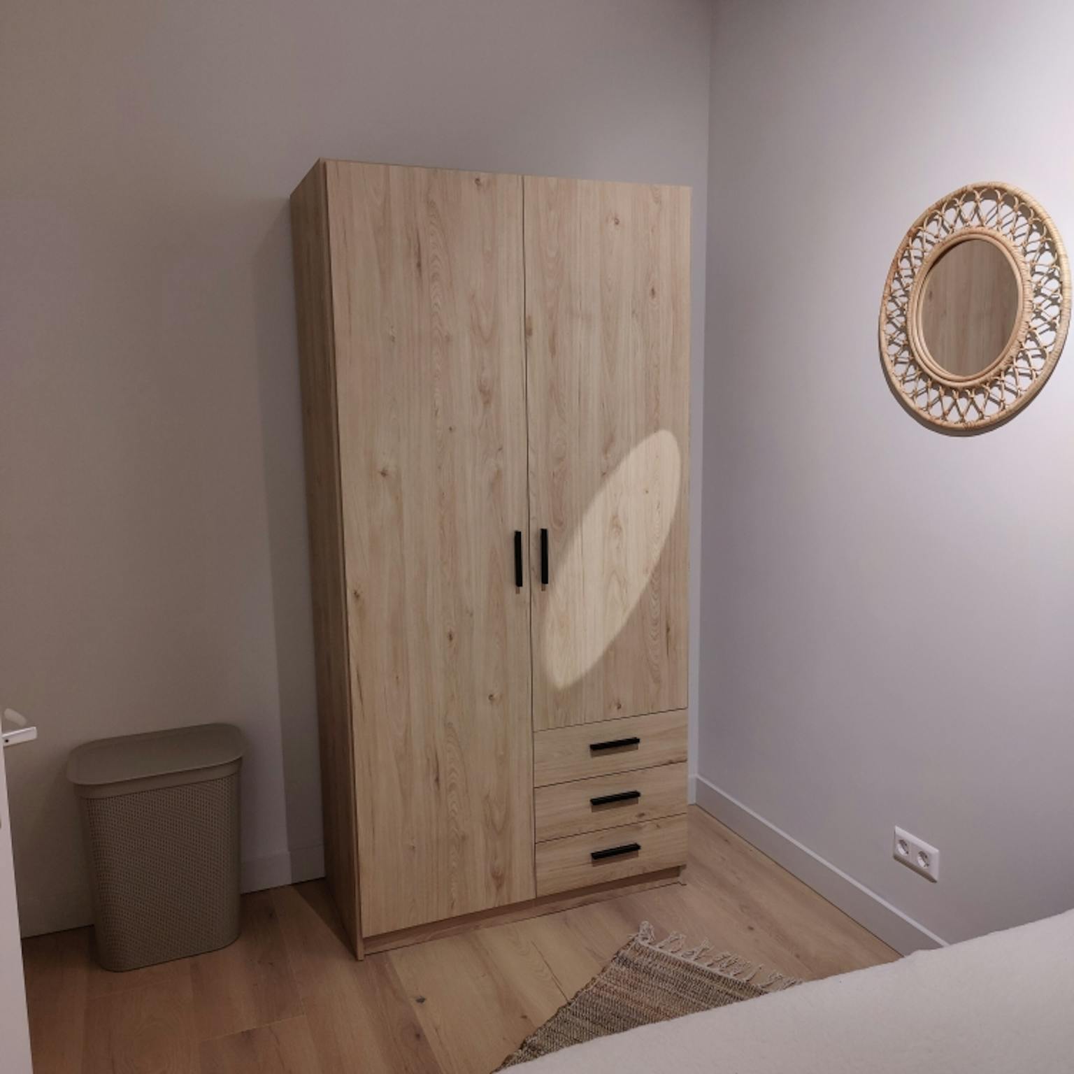 Through the hallway you’ll find the bedroom, equipped with comfortable double bed, two side tables and double-doored clothing closet. This bedroom with all its details is cozy and well decorated.