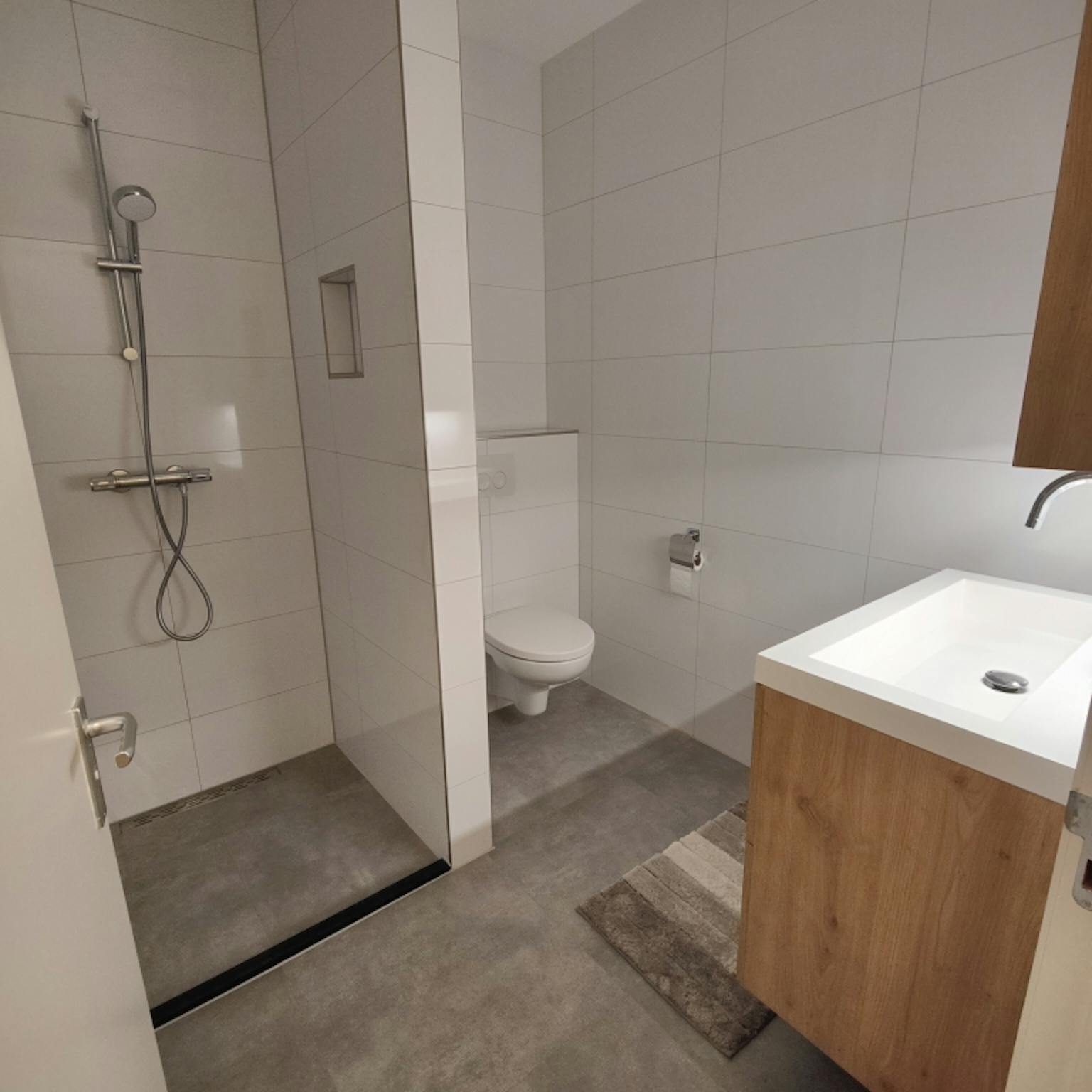 On the ground floor of the building this stylish apartment is located. Through the first door you directly enter the apartment. In the hallway you find the doors to the bathroom, bedroom, living- dining & kitchen area and the separate laundry room.
